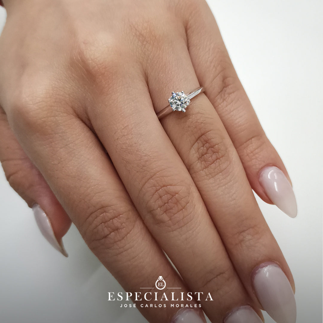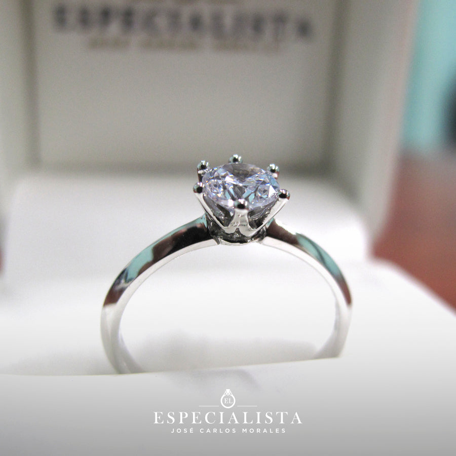 Anillo de compromiso en oro blanco de 14 Kilates.
