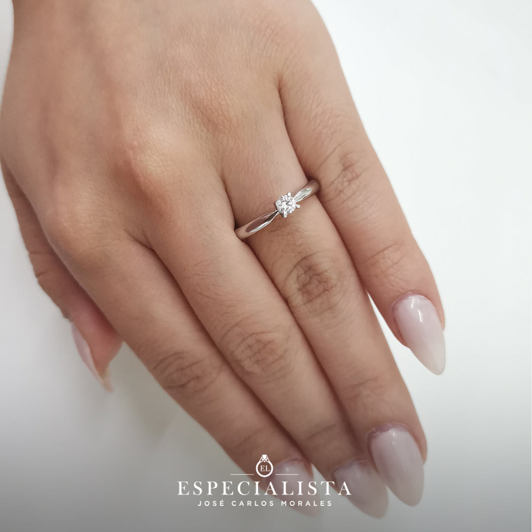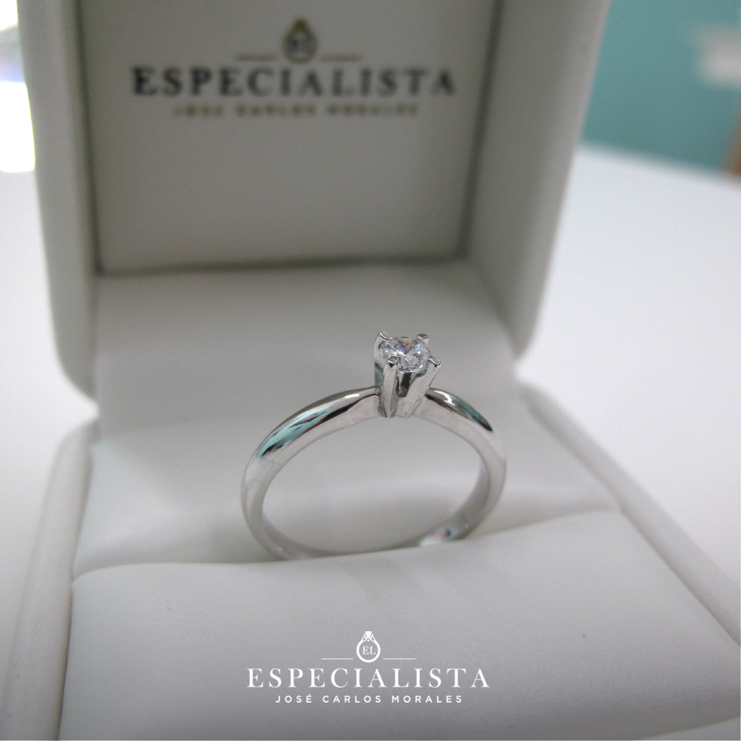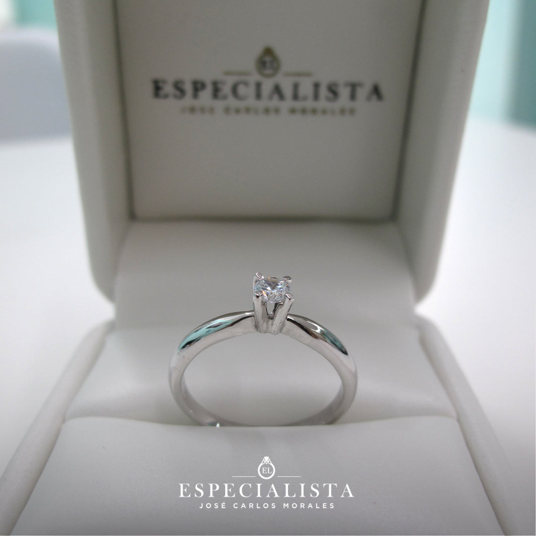 Anillo de compromiso en oro blanco de 14 Kilates.