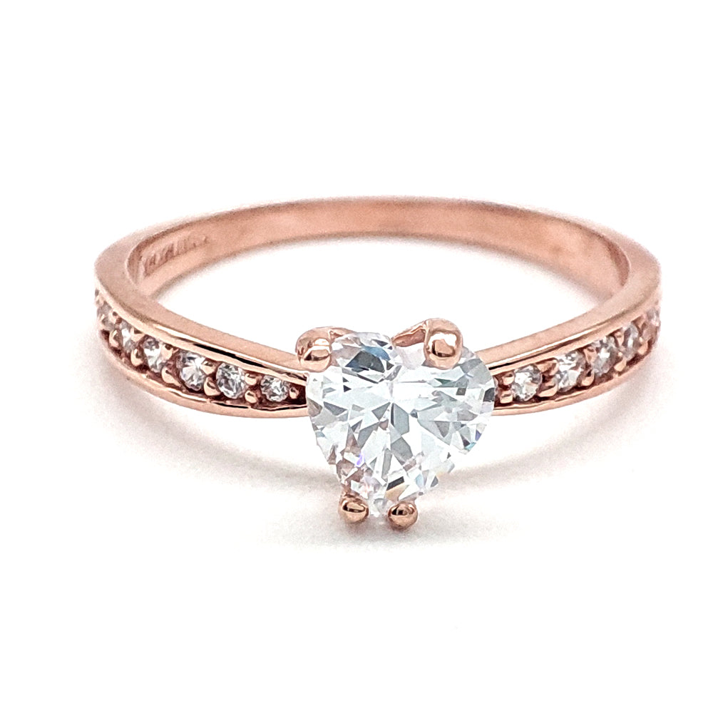 Anillo de compromiso en oro rosa de 14 Kilates con piedra central en corte corazón.