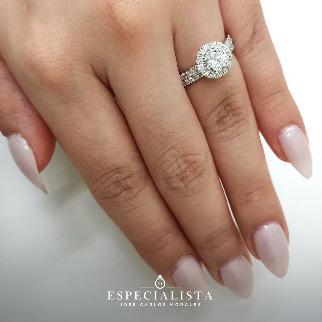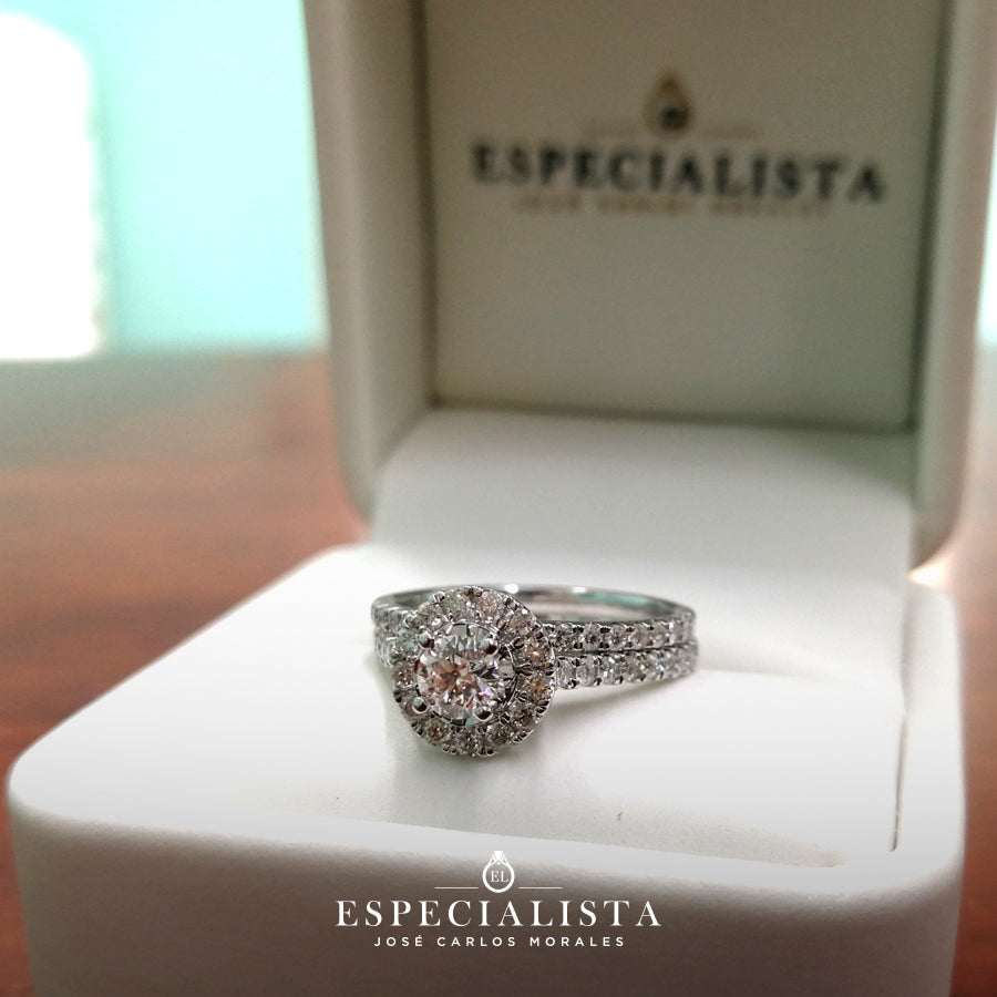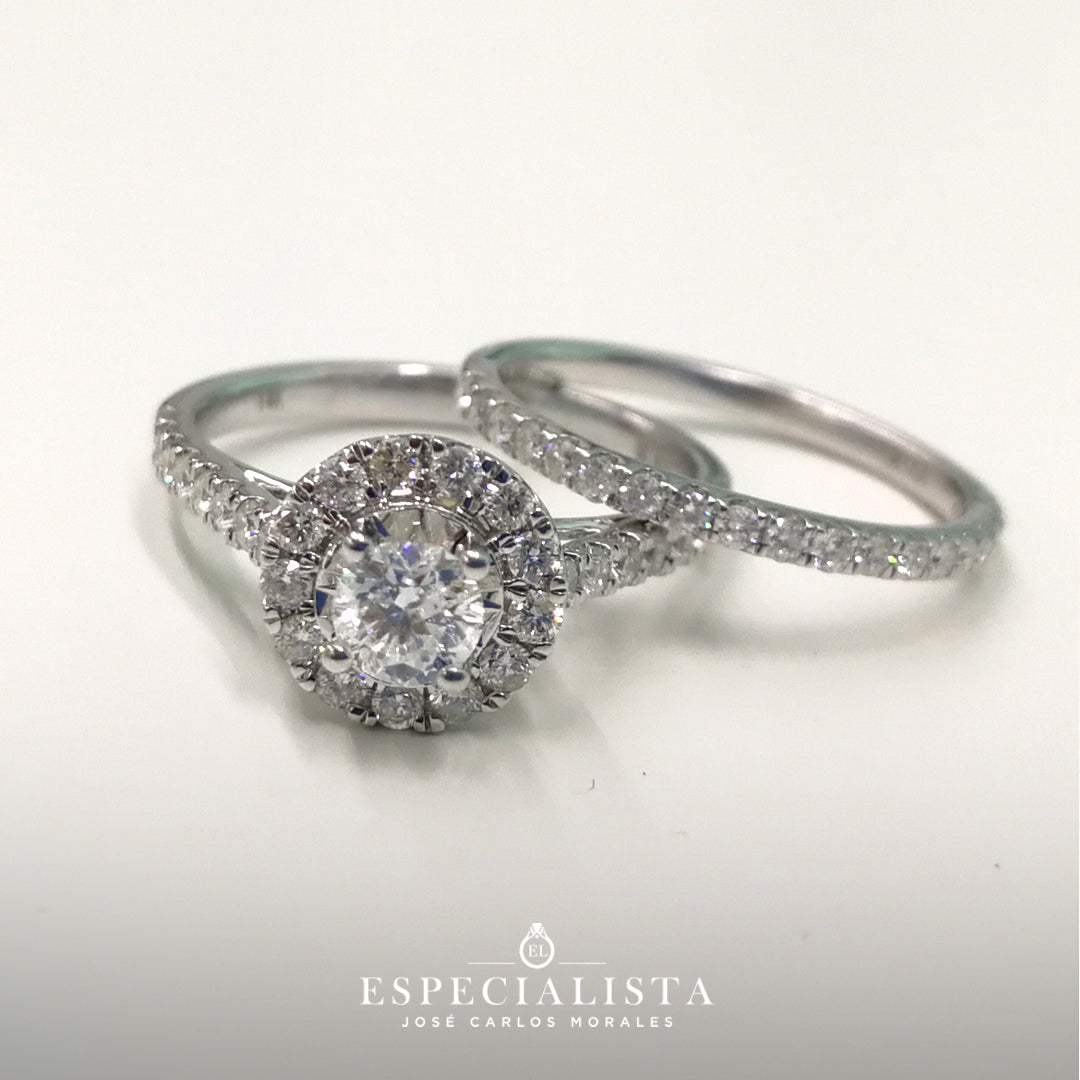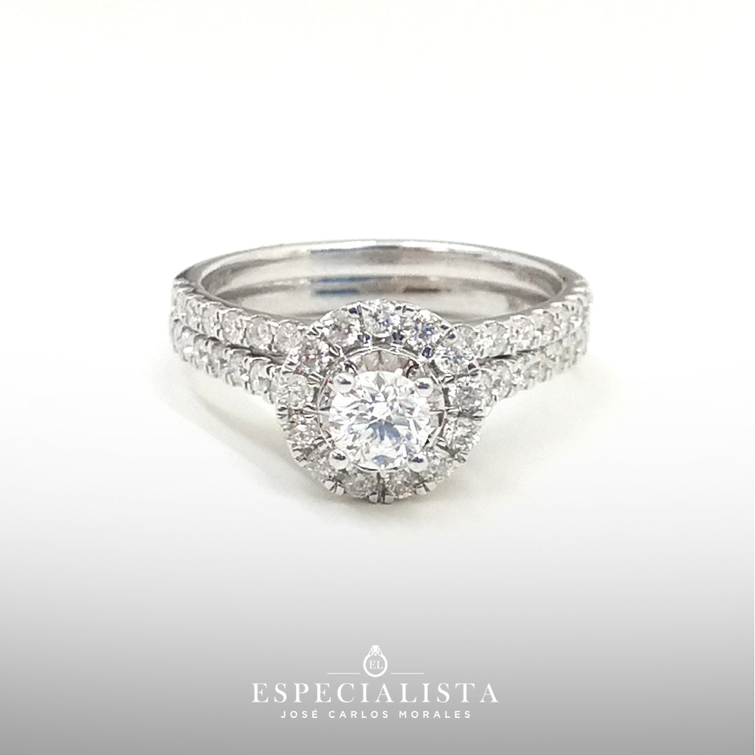 Anillo de Compromiso y Churumbela en oro blanco con Diamantes naturales diseño corte en piedra redondo.