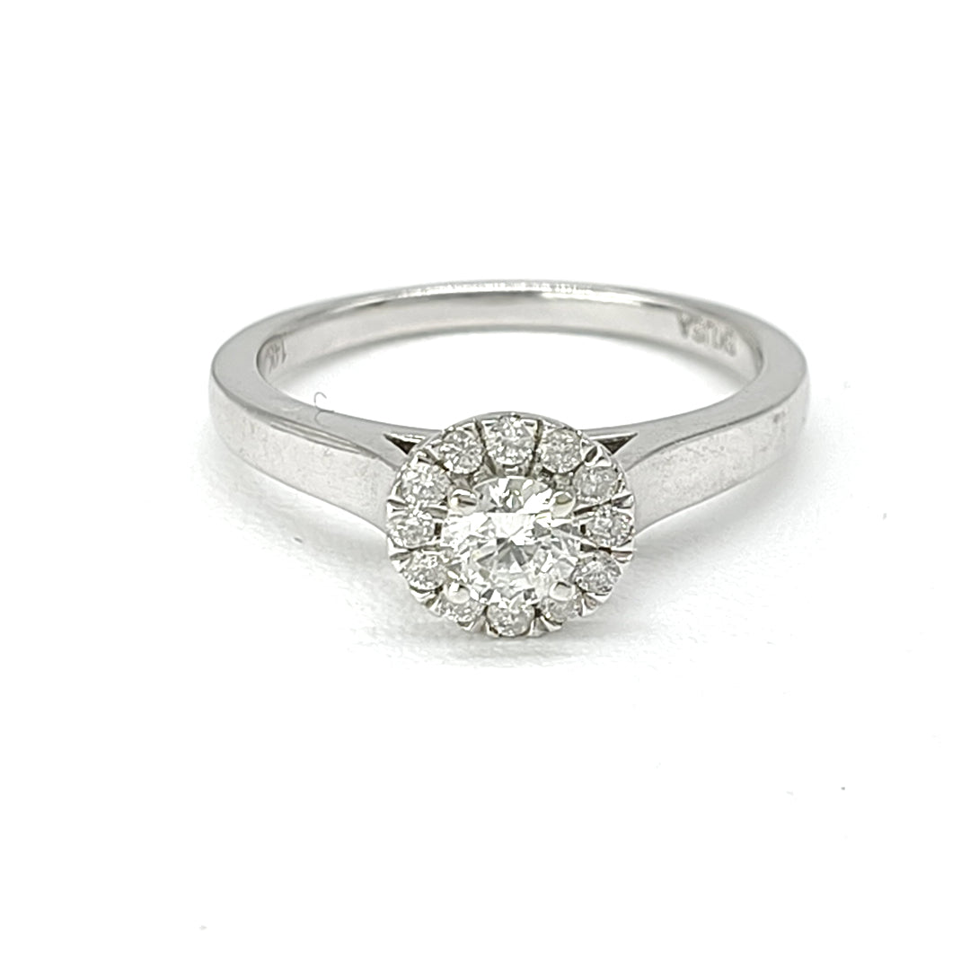 Anillo compromiso oro blanco de diamante natural en corte redondo.