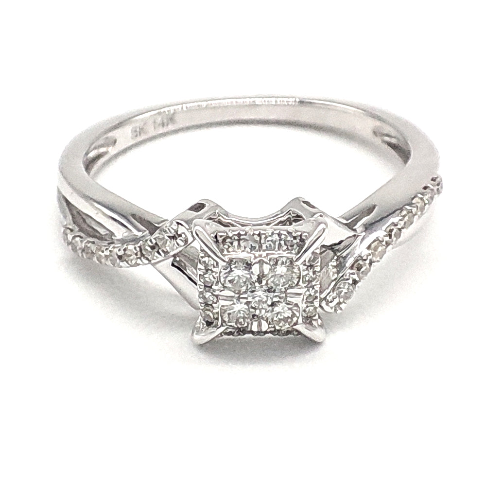 Anillo de Compromiso en oro blanco de 14 Kilates, montado con Diamantes naturales.