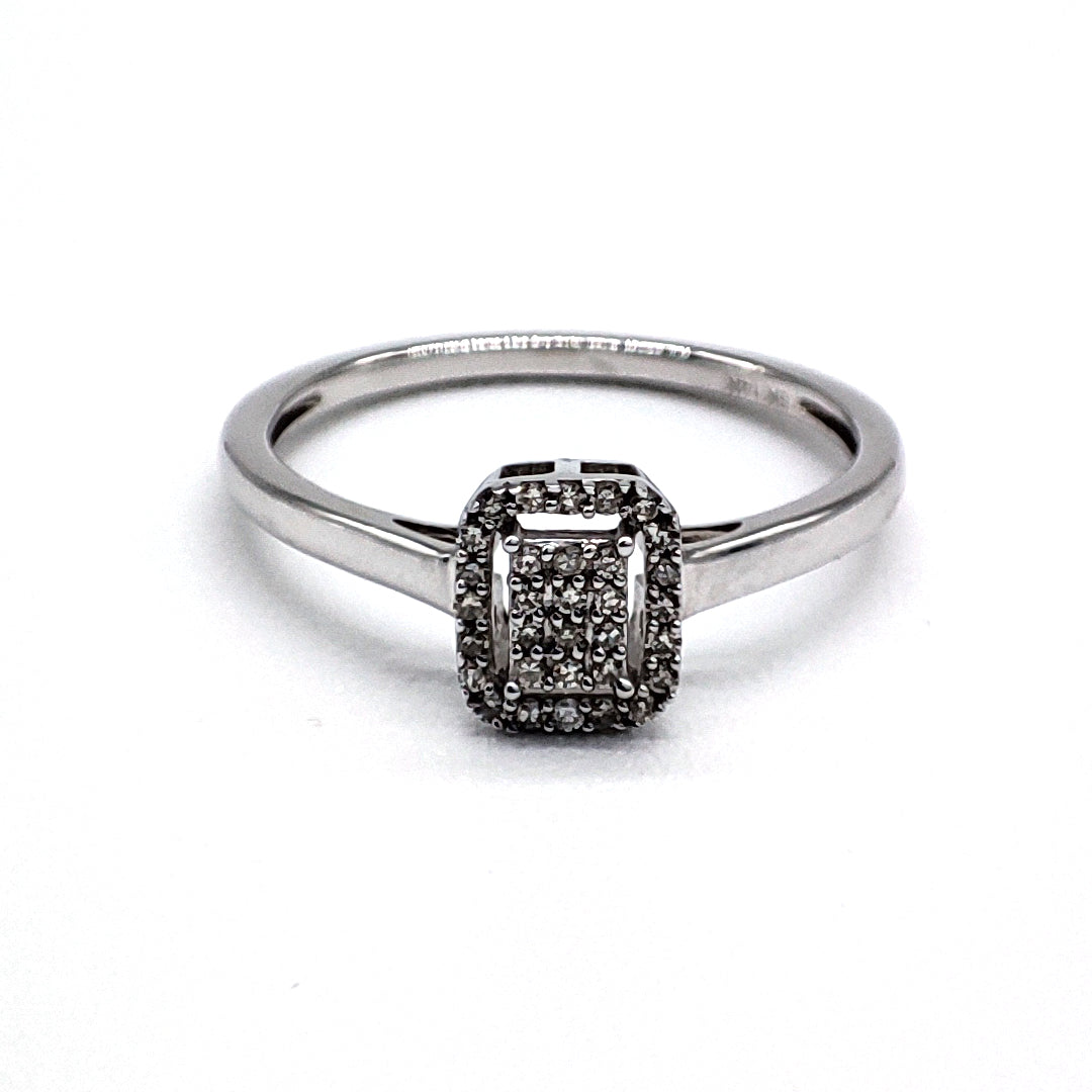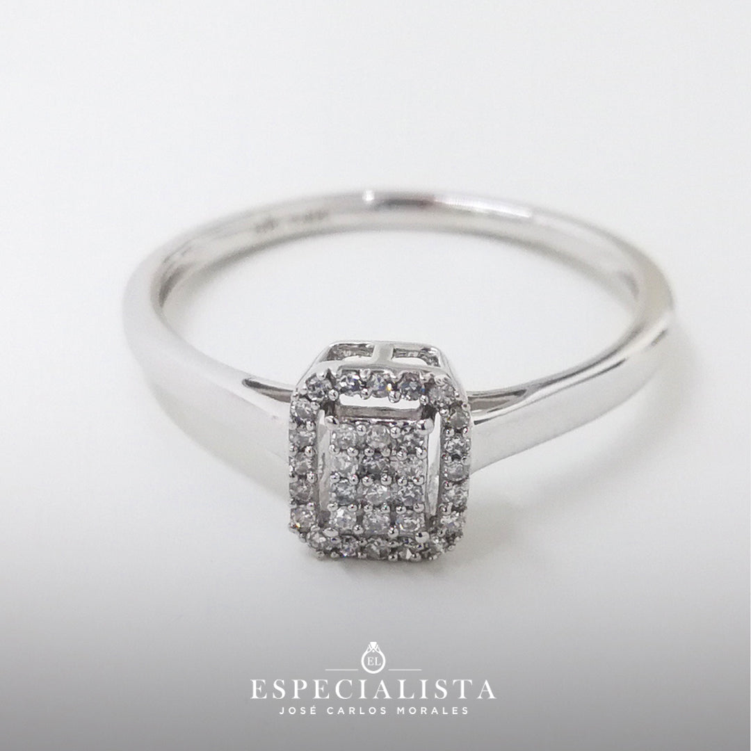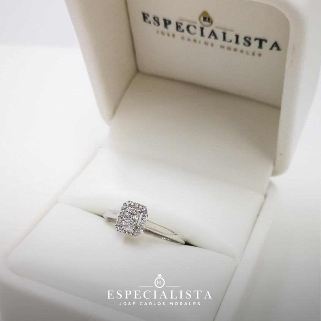 Anillo de compromiso en oro blanco con Diamantes naturales diseño cuadrado con piedra en corte redondo.