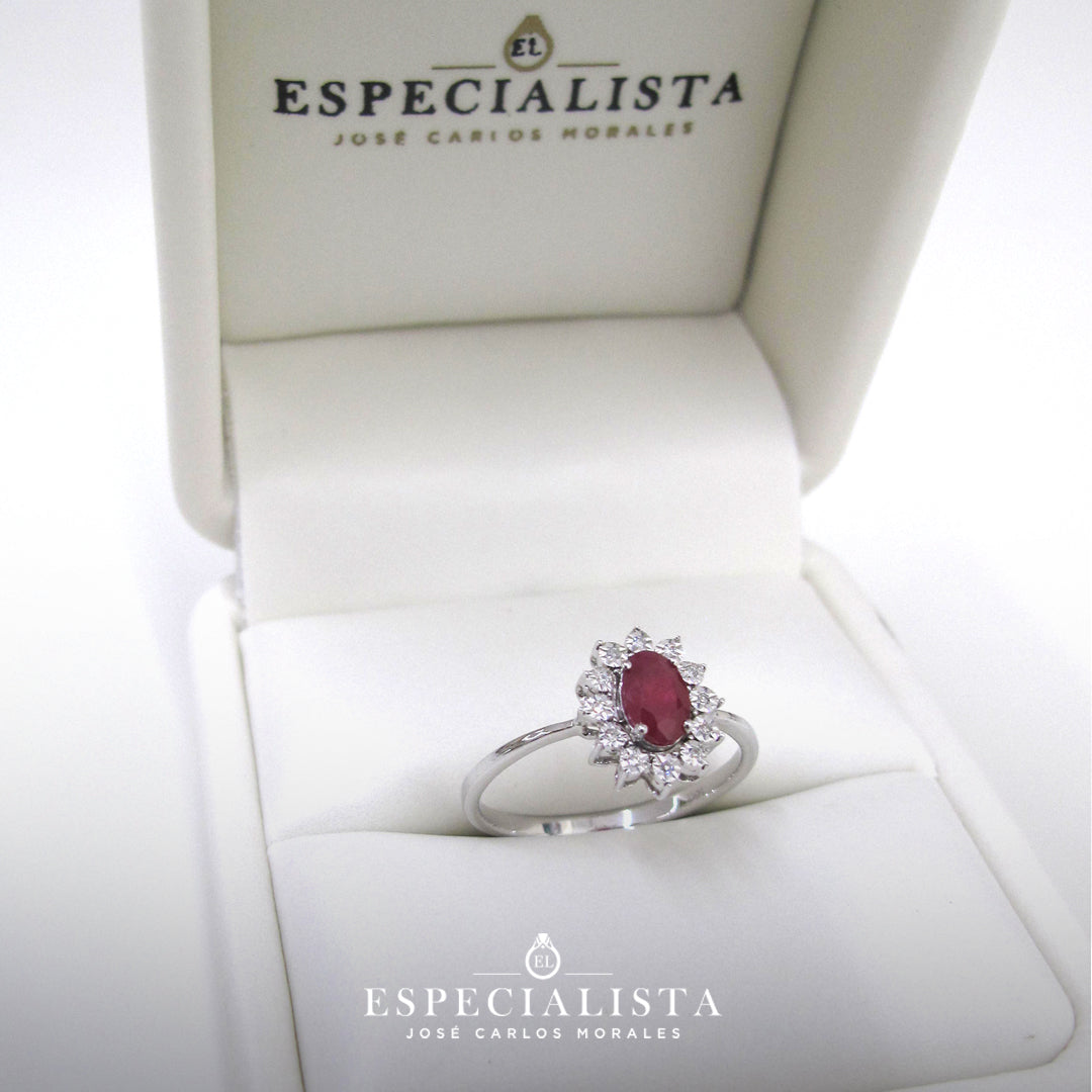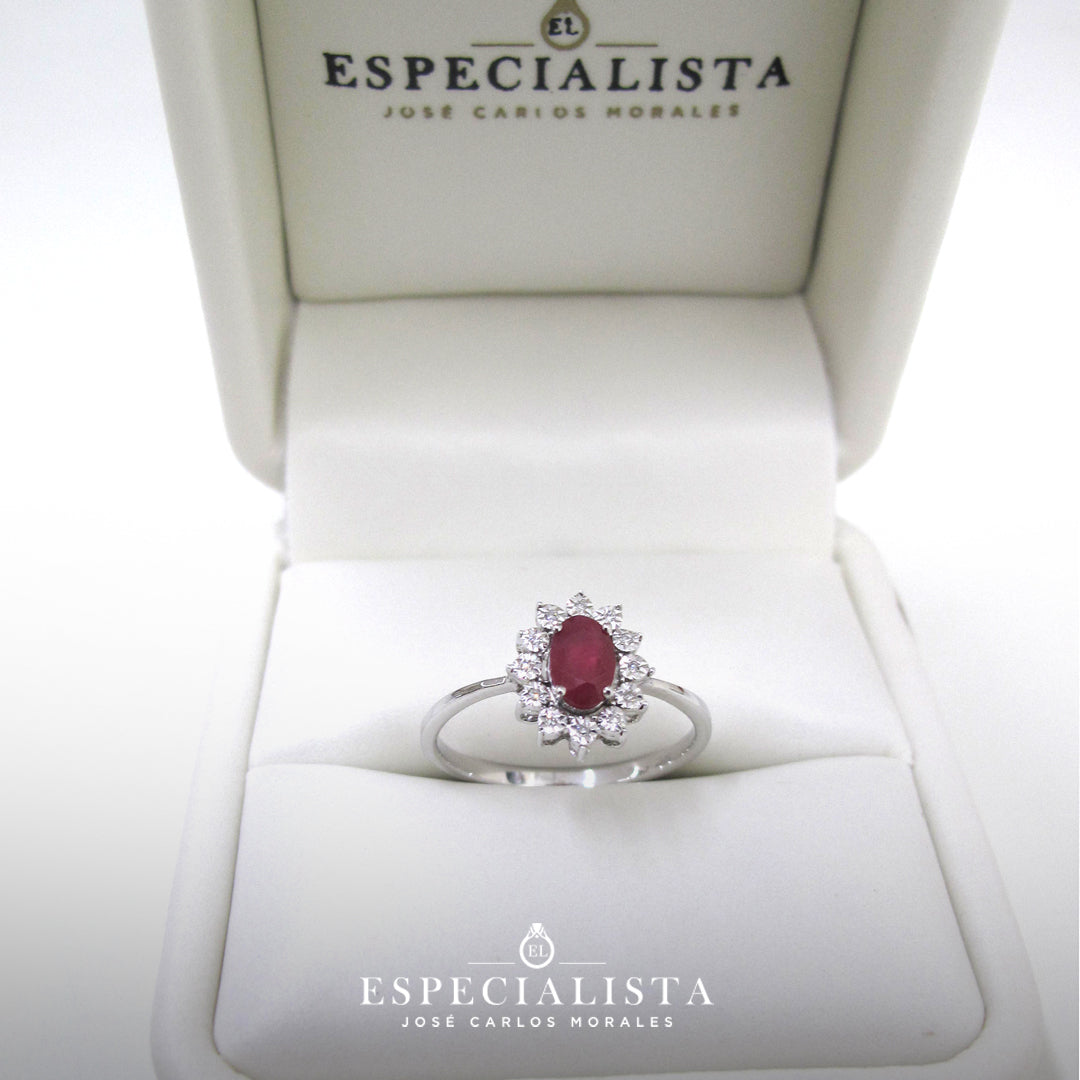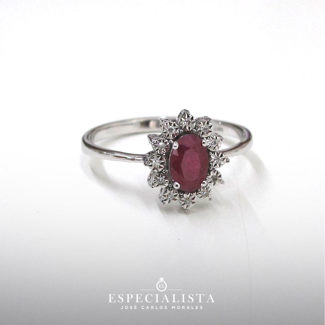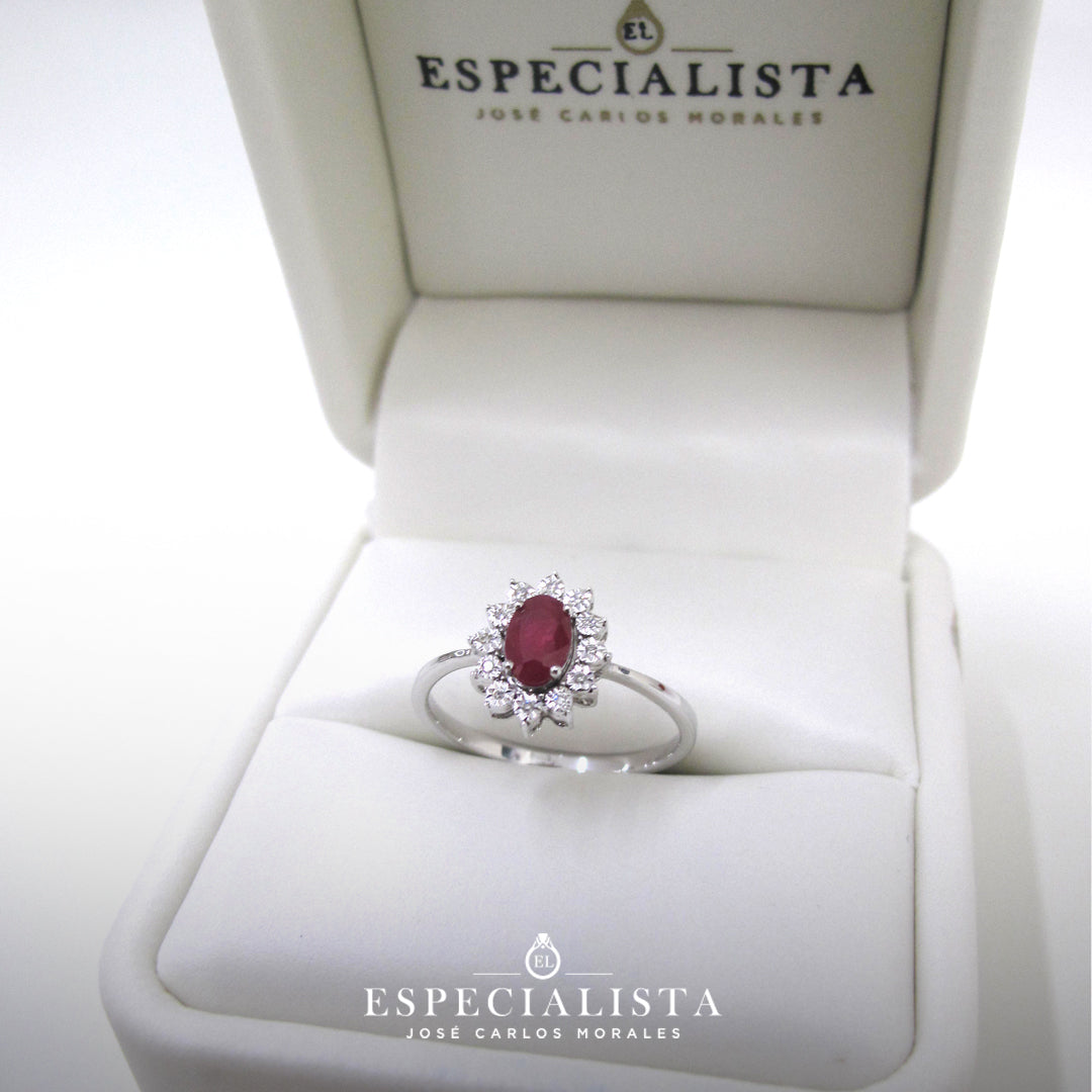Anillo de compromiso en oro blanco de 14 Kilates con Diamantes naturales.