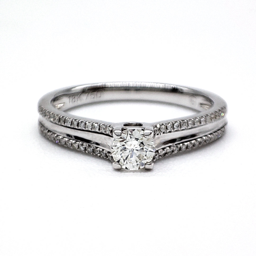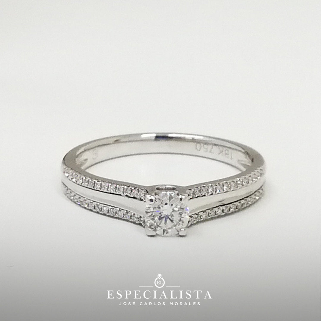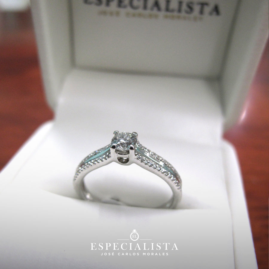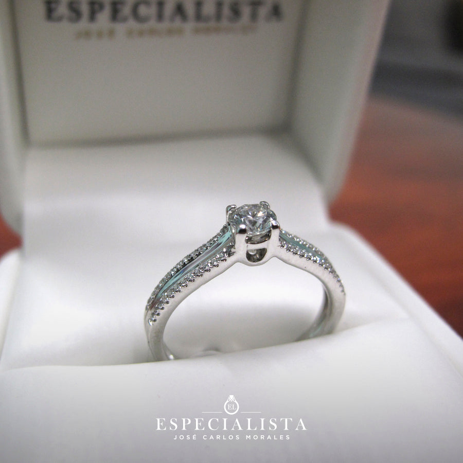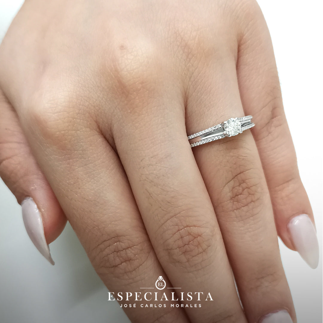 Anillo de Compromiso en oro blanco de 18 Kilates con Diamante diseño corte en piedra redondo.