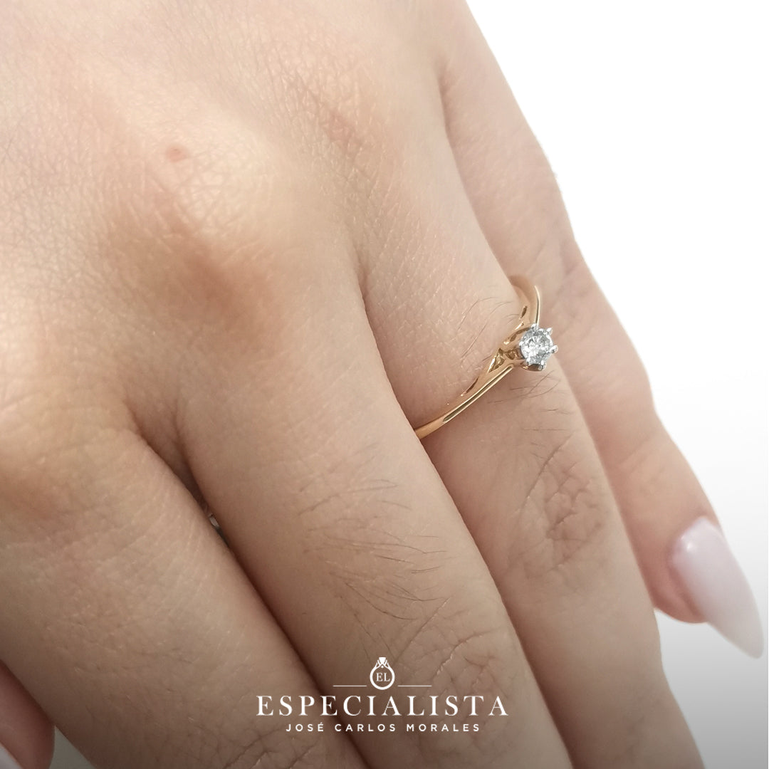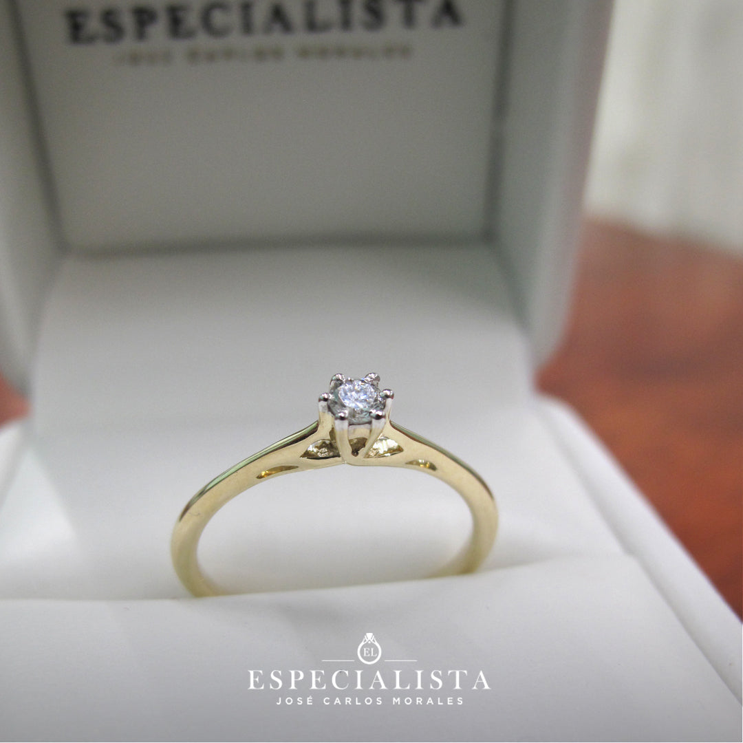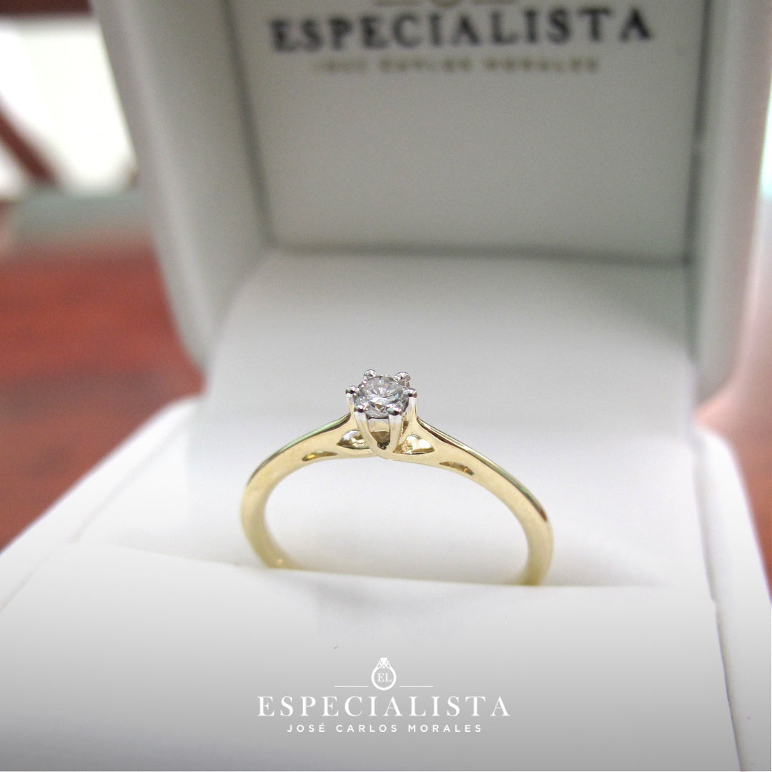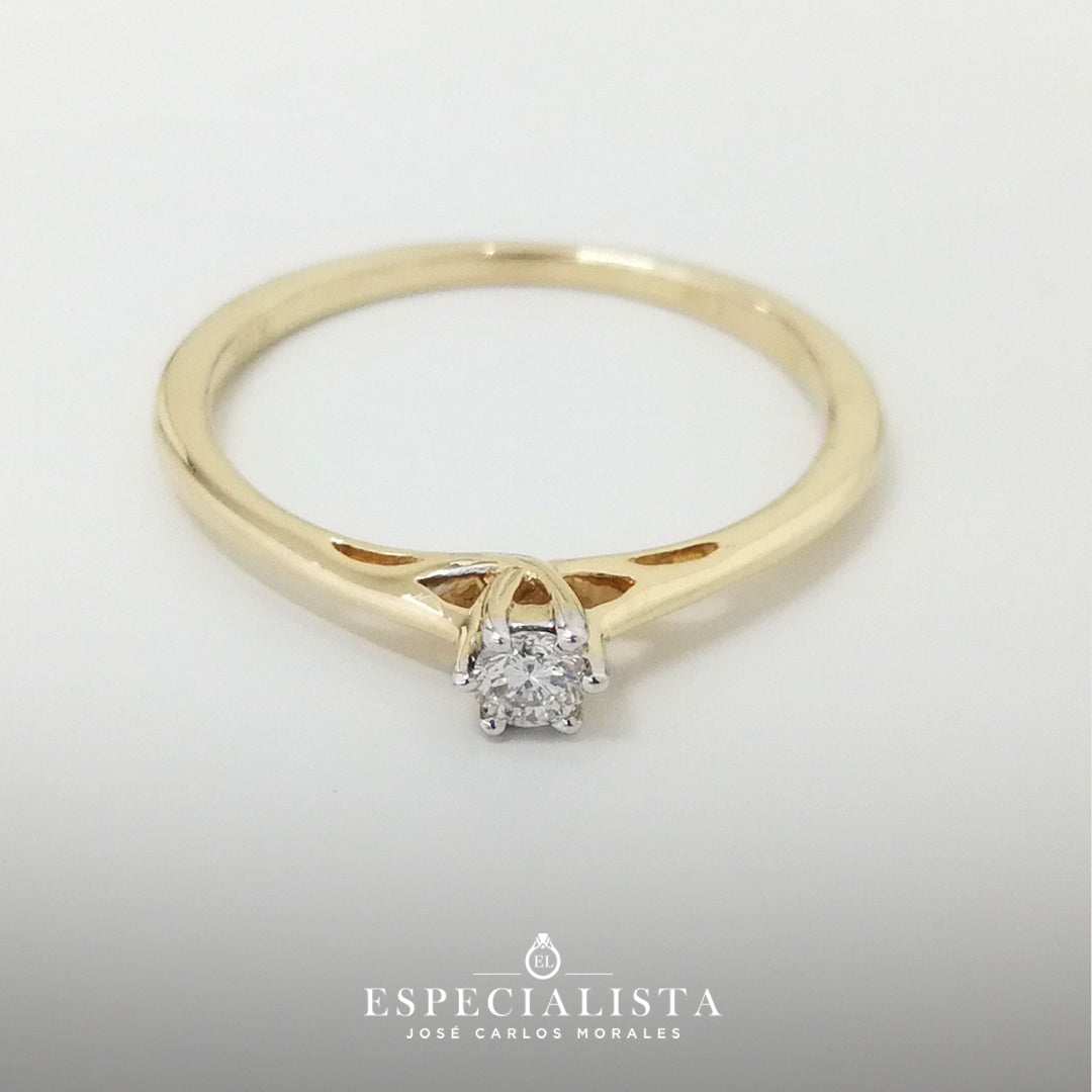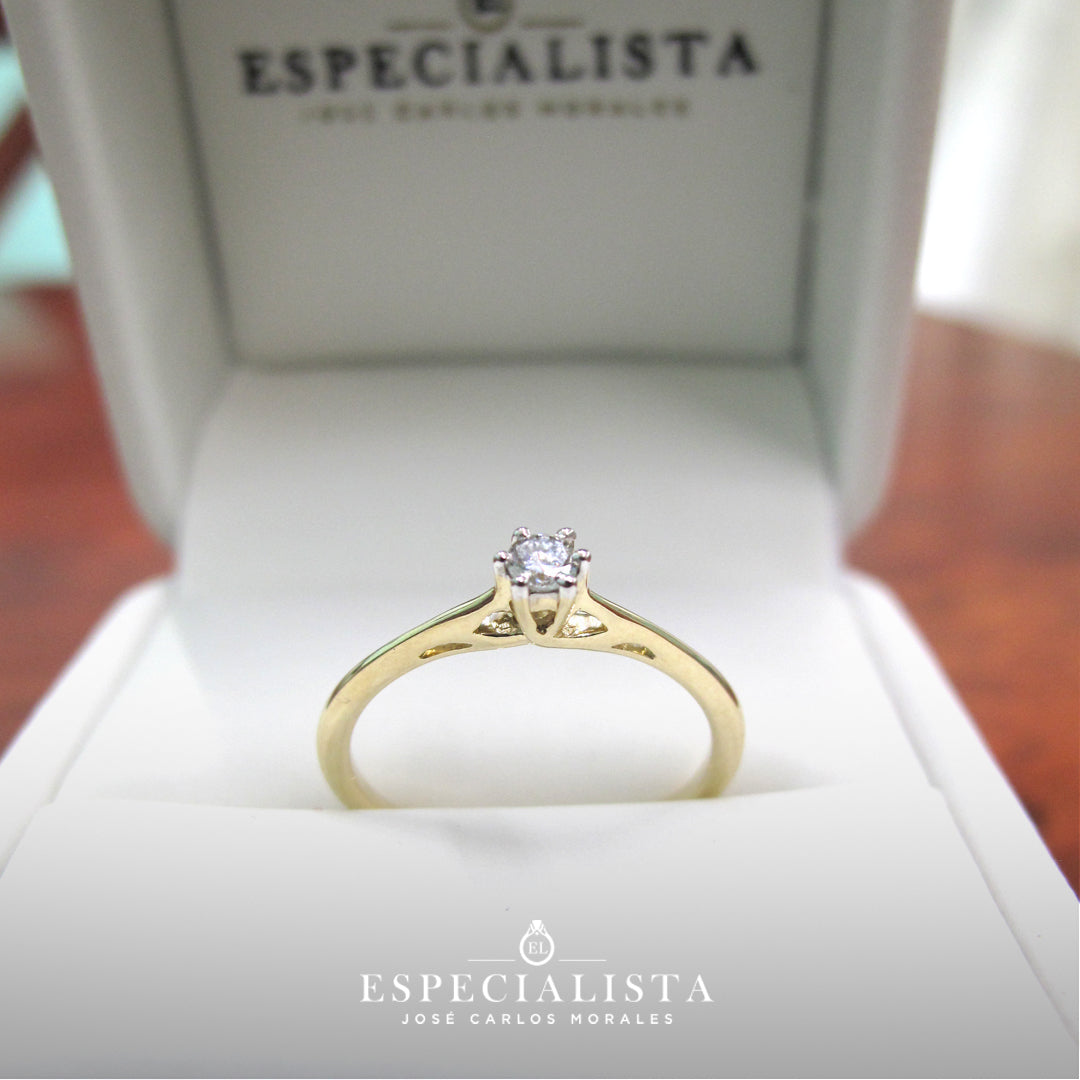 Anillo de compromiso en oro amarillo montado con diamante natural.