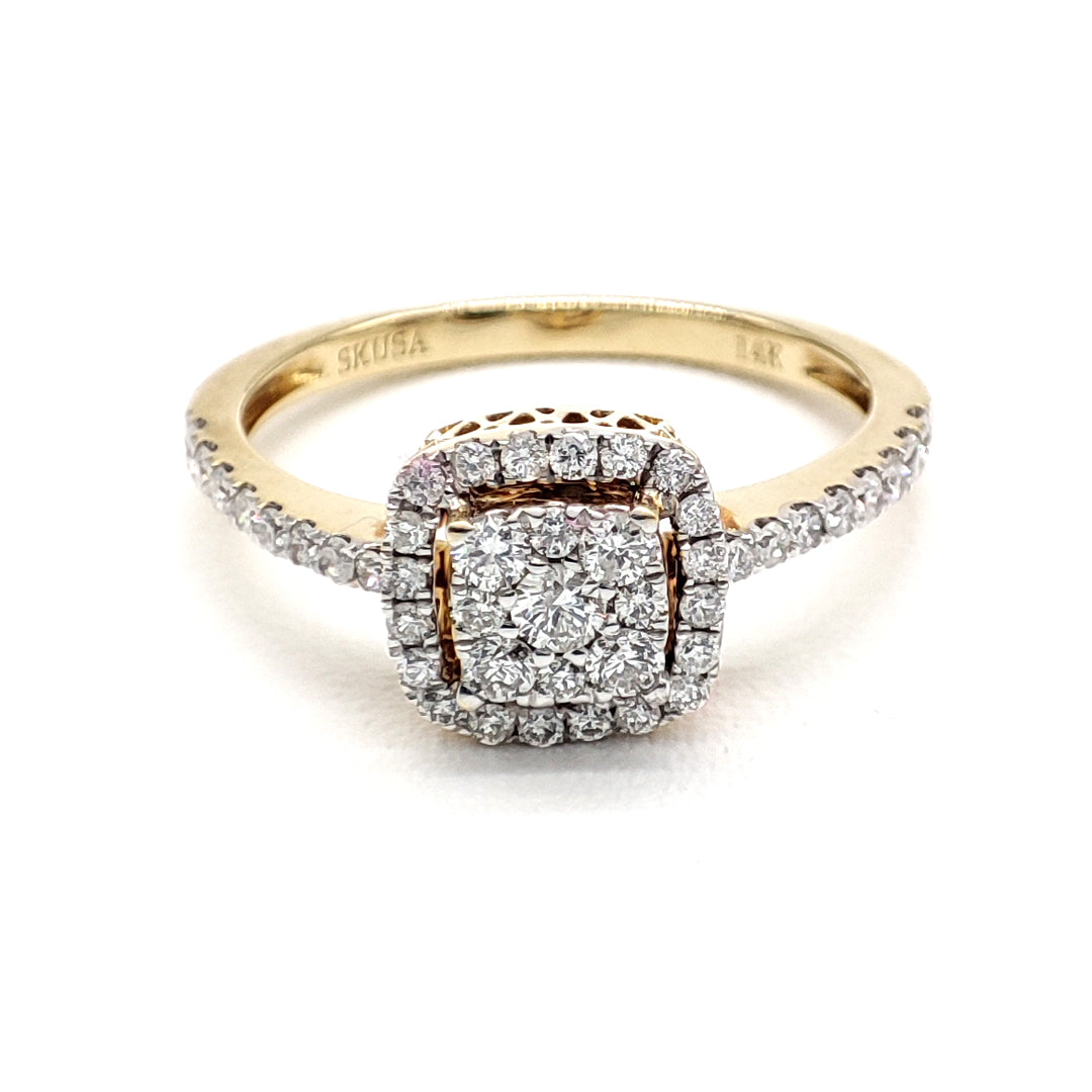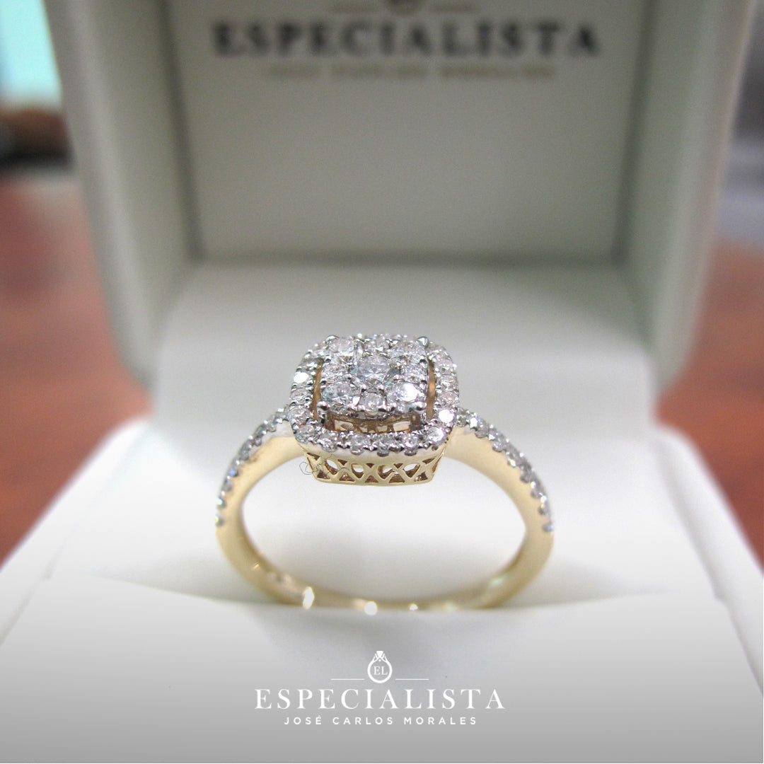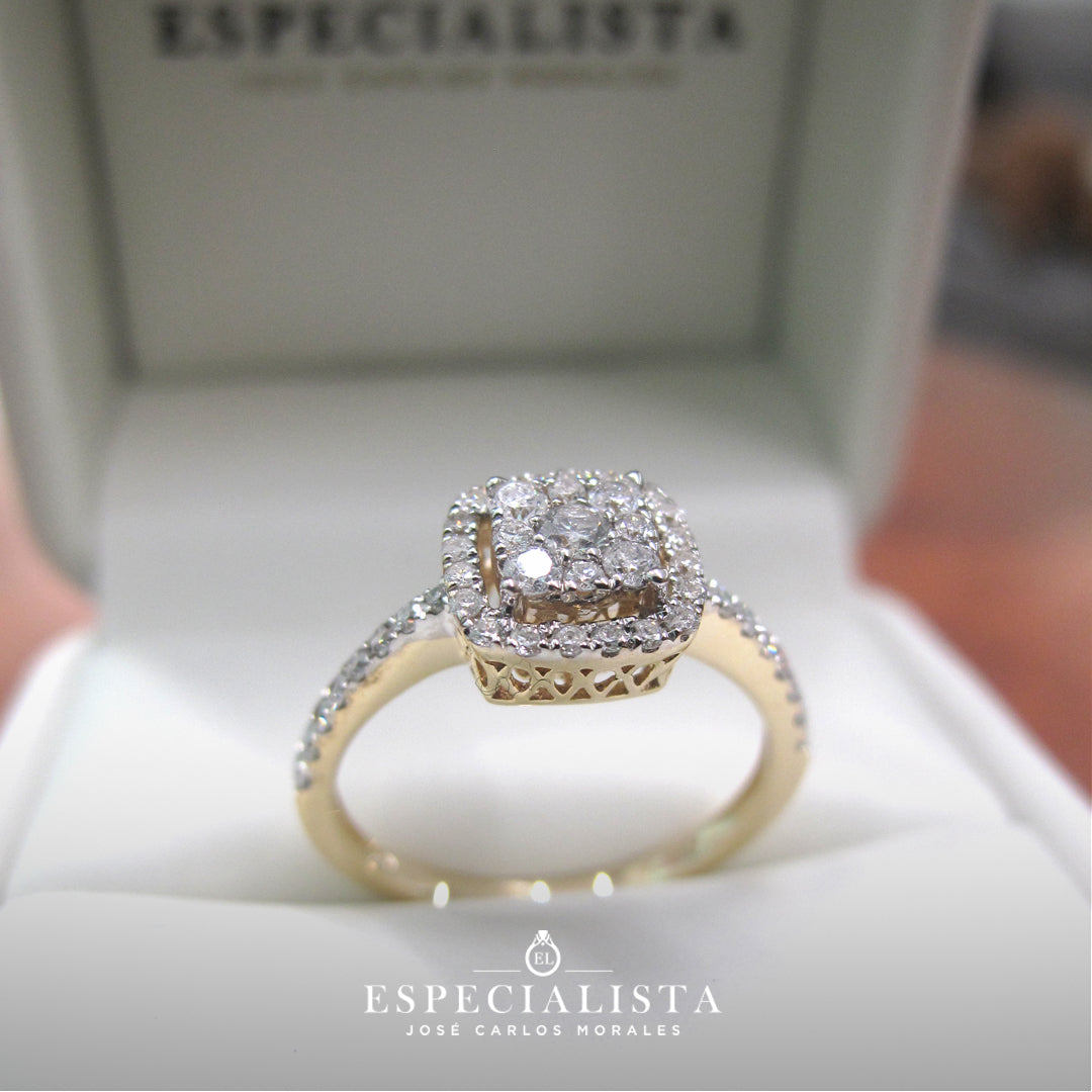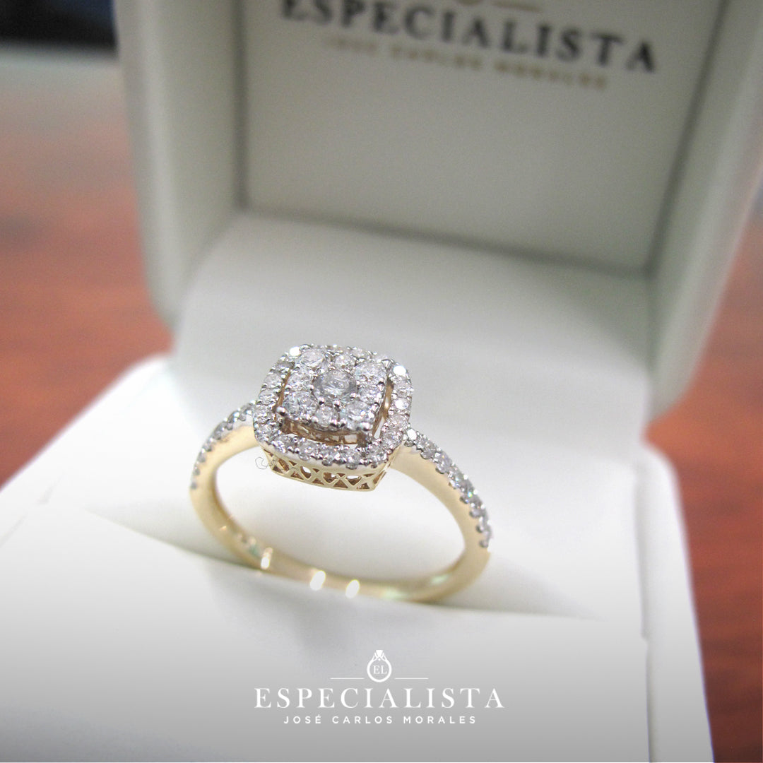 Anillo compromiso oro amarillo montado con diamantes naturales.