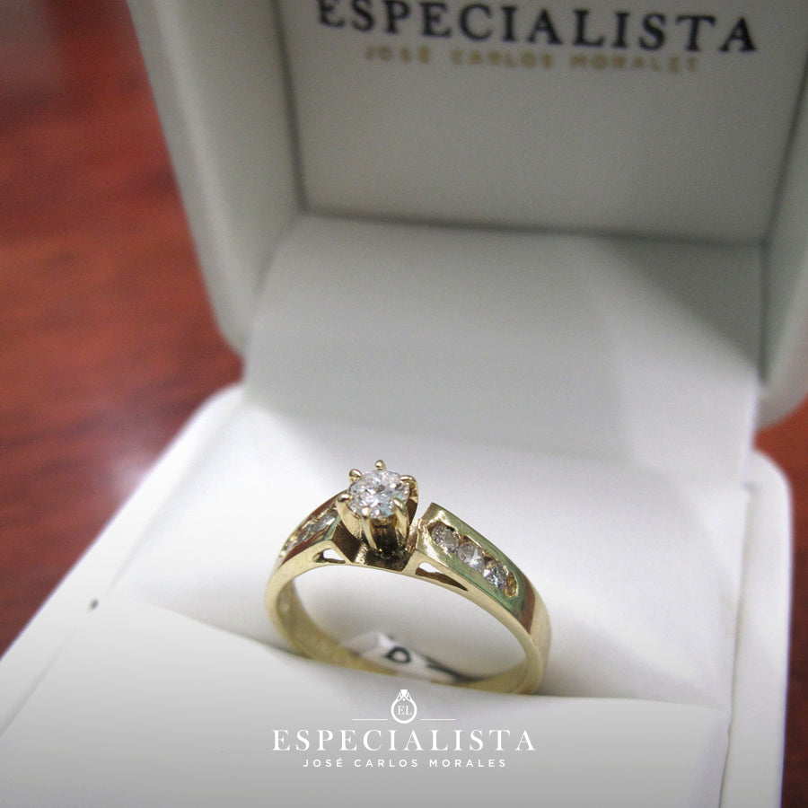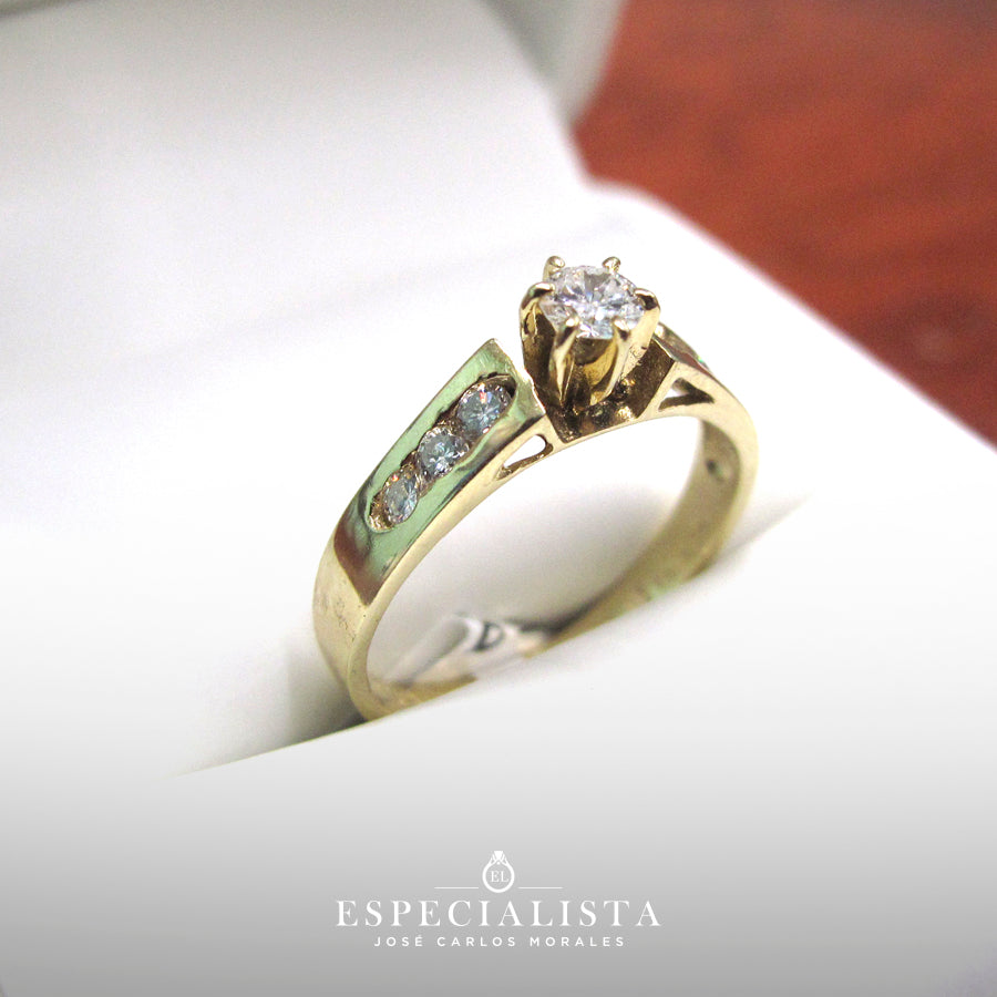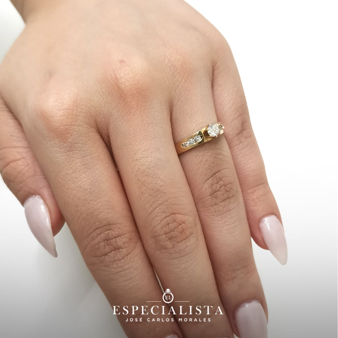 Anillo de Compromiso en oro amarillo montado con Diamante natural.