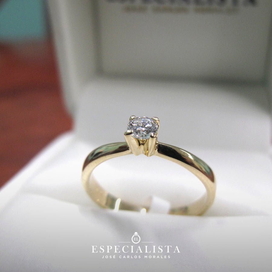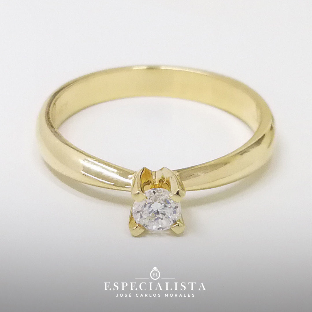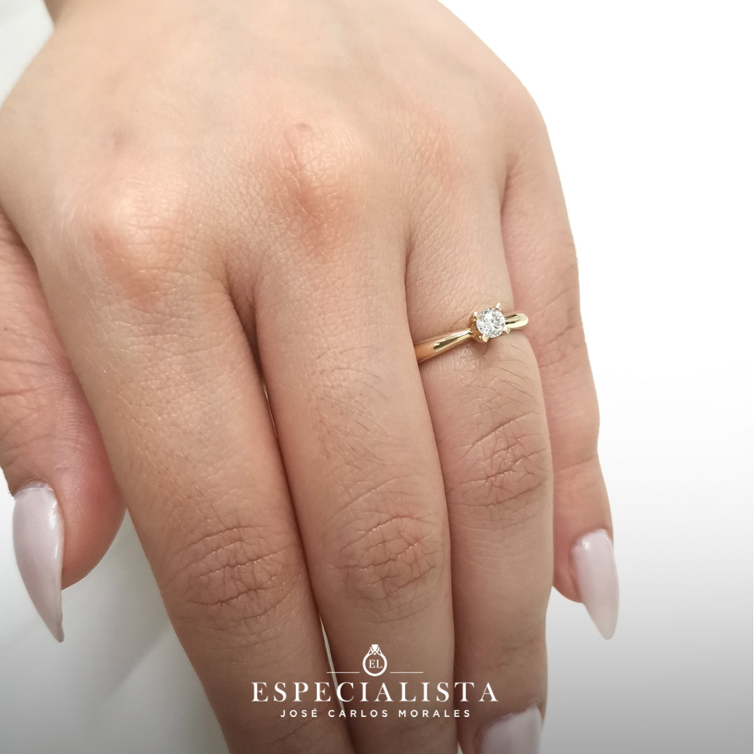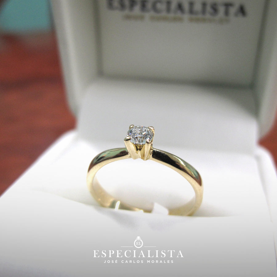 Anillo de Compromiso en oro amarillo montado con Diamante natural.