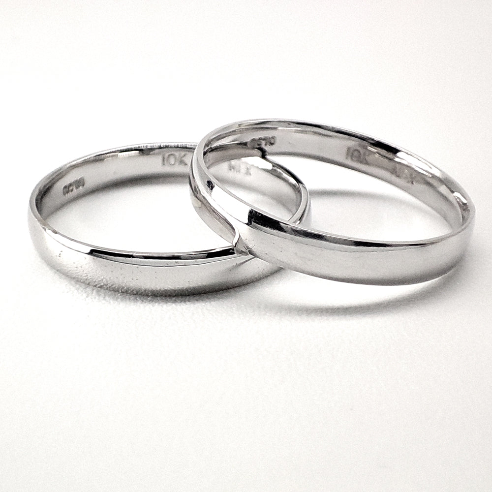 Par de argollas de matrimonio tradicionales en oro blanco de 10 kilates.