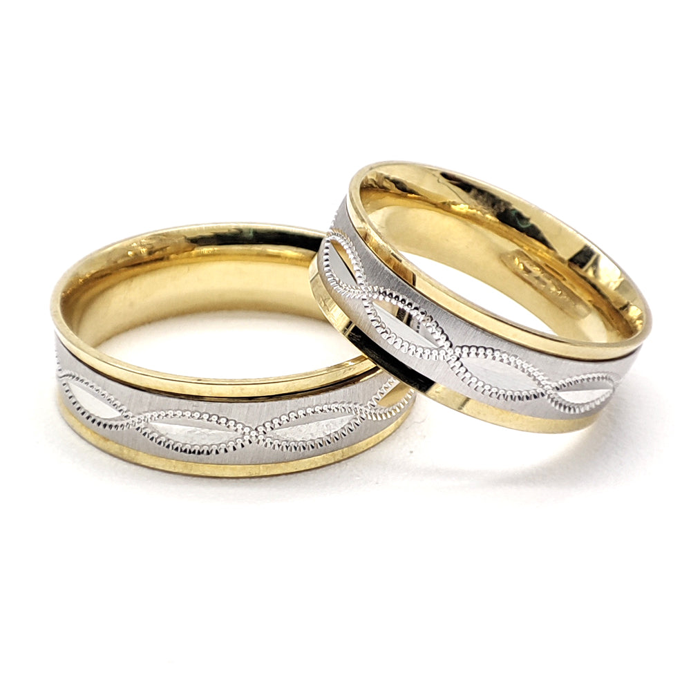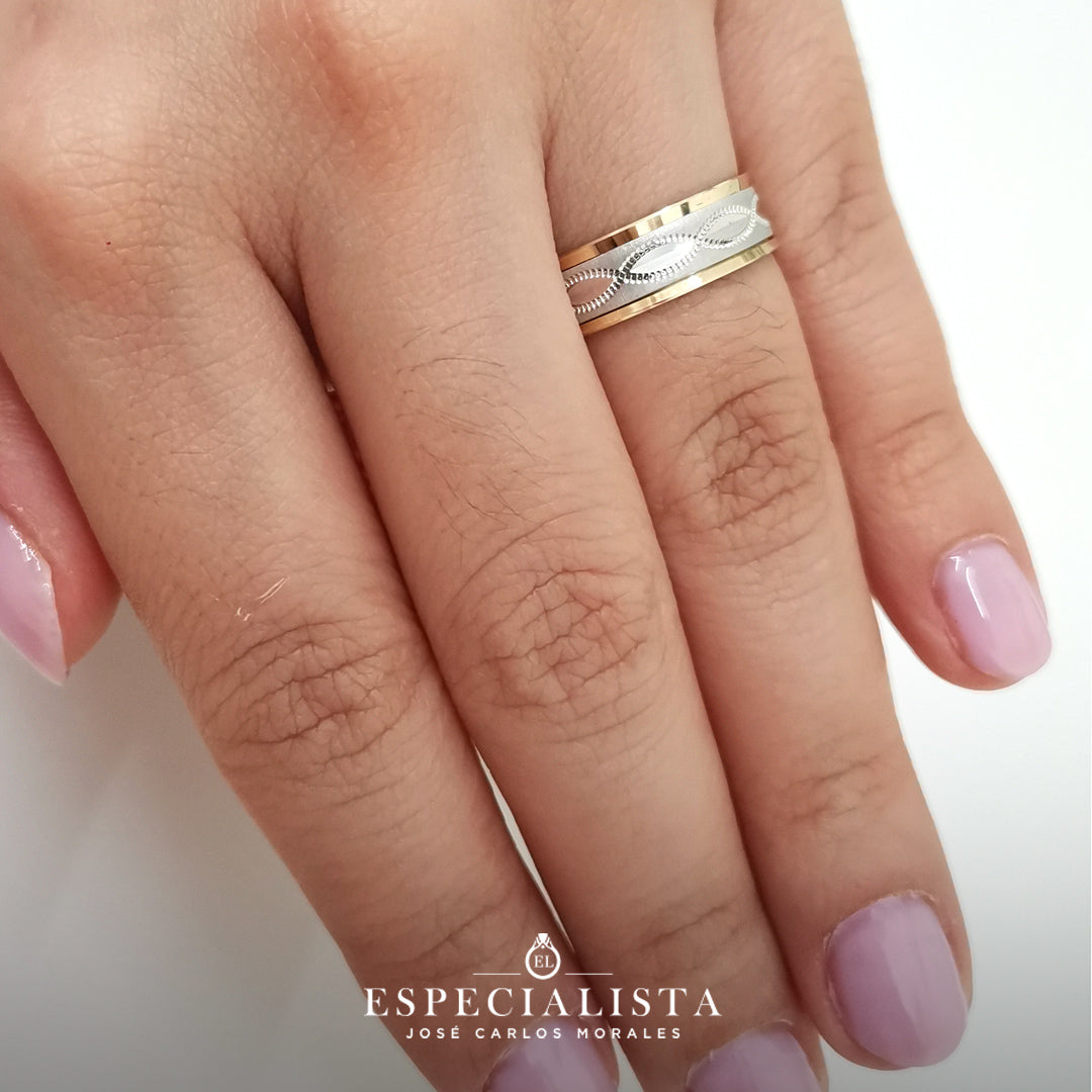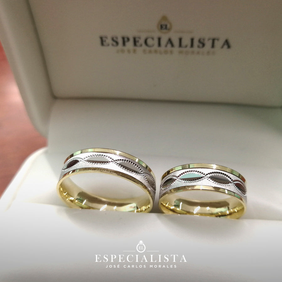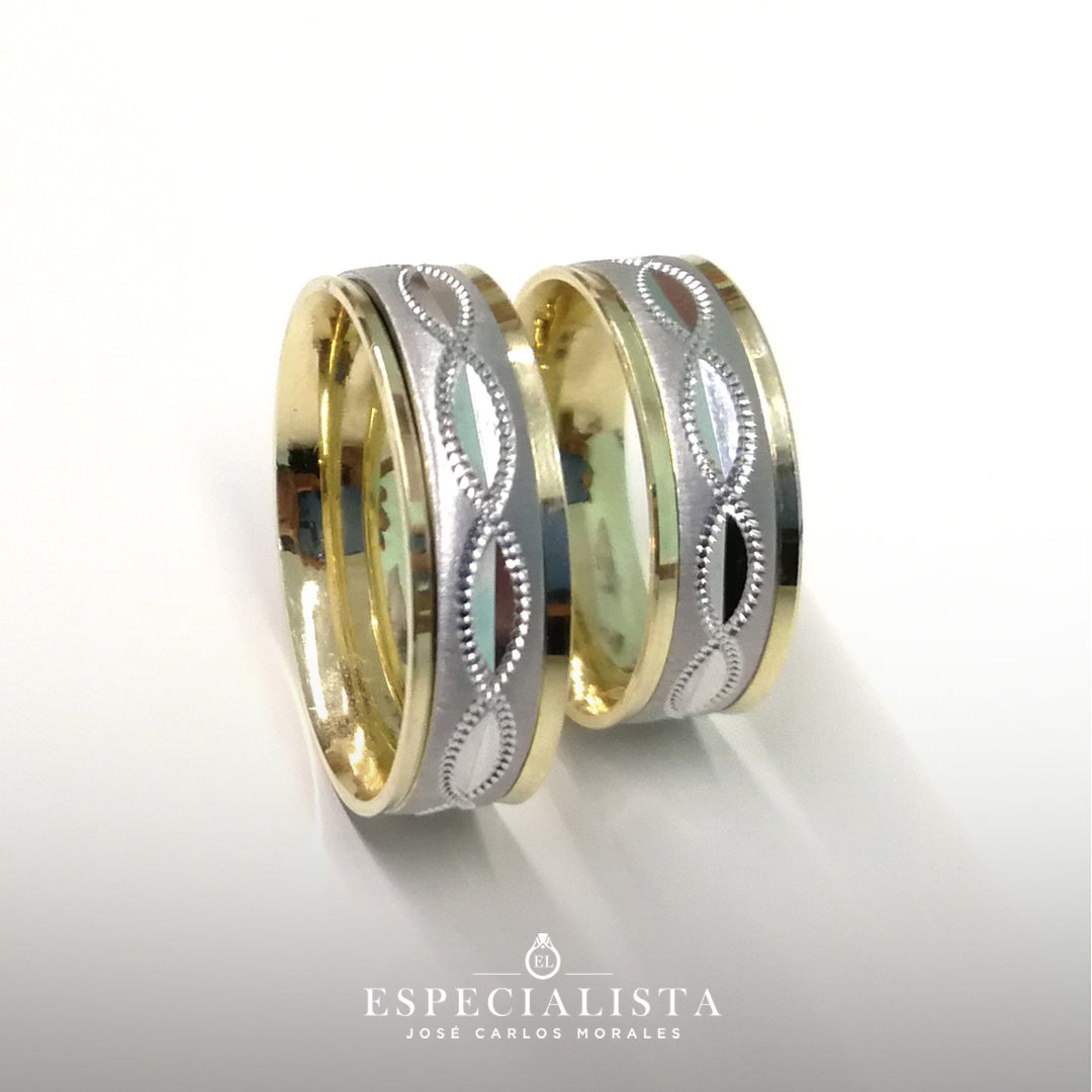 Par de Argollas de Matrimonio giratorias en oro combinado de 10 Kilates.