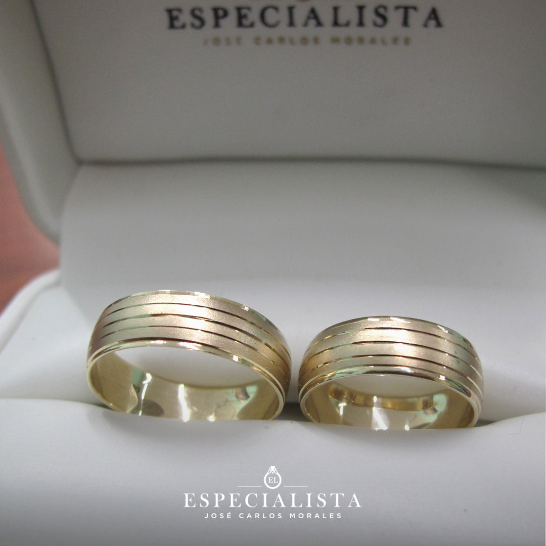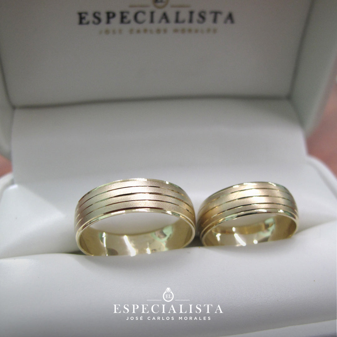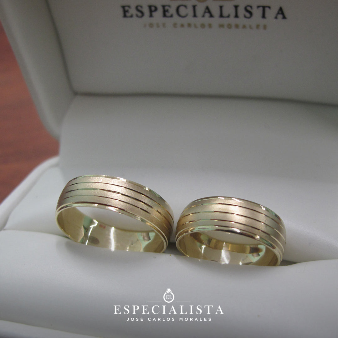 Par de Argollas de Matrimonio en oro amarillo de 10 Kilates, diseño con lineas