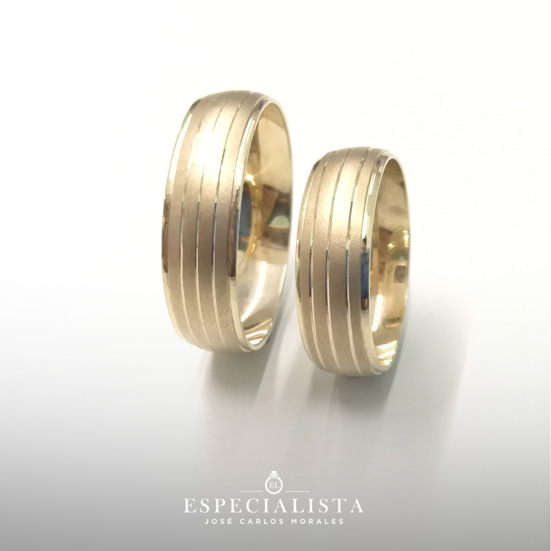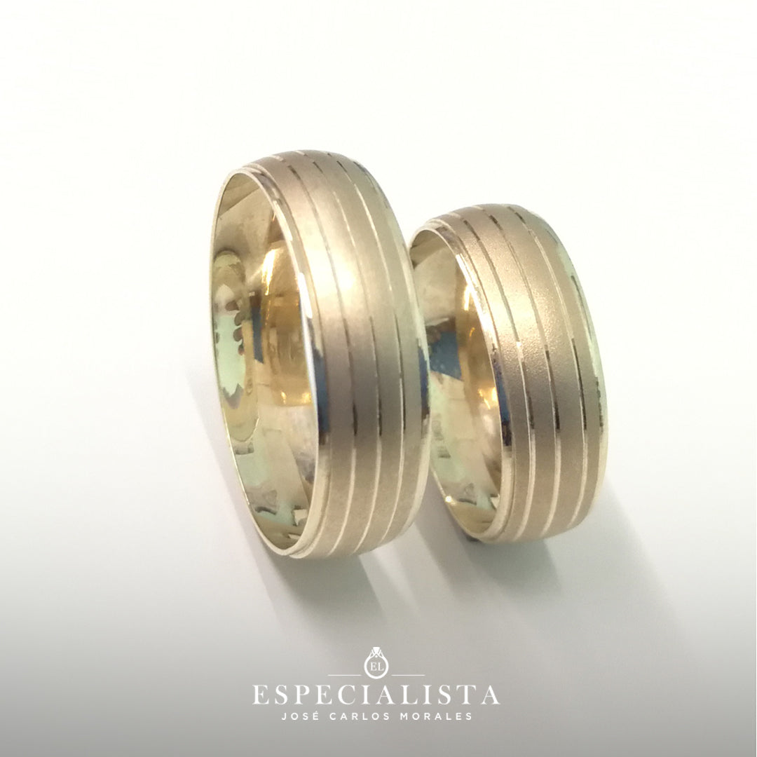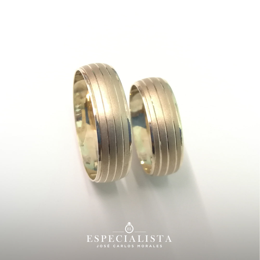 Par de Argollas de Matrimonio en oro amarillo de 10 Kilates, diseño con lineas