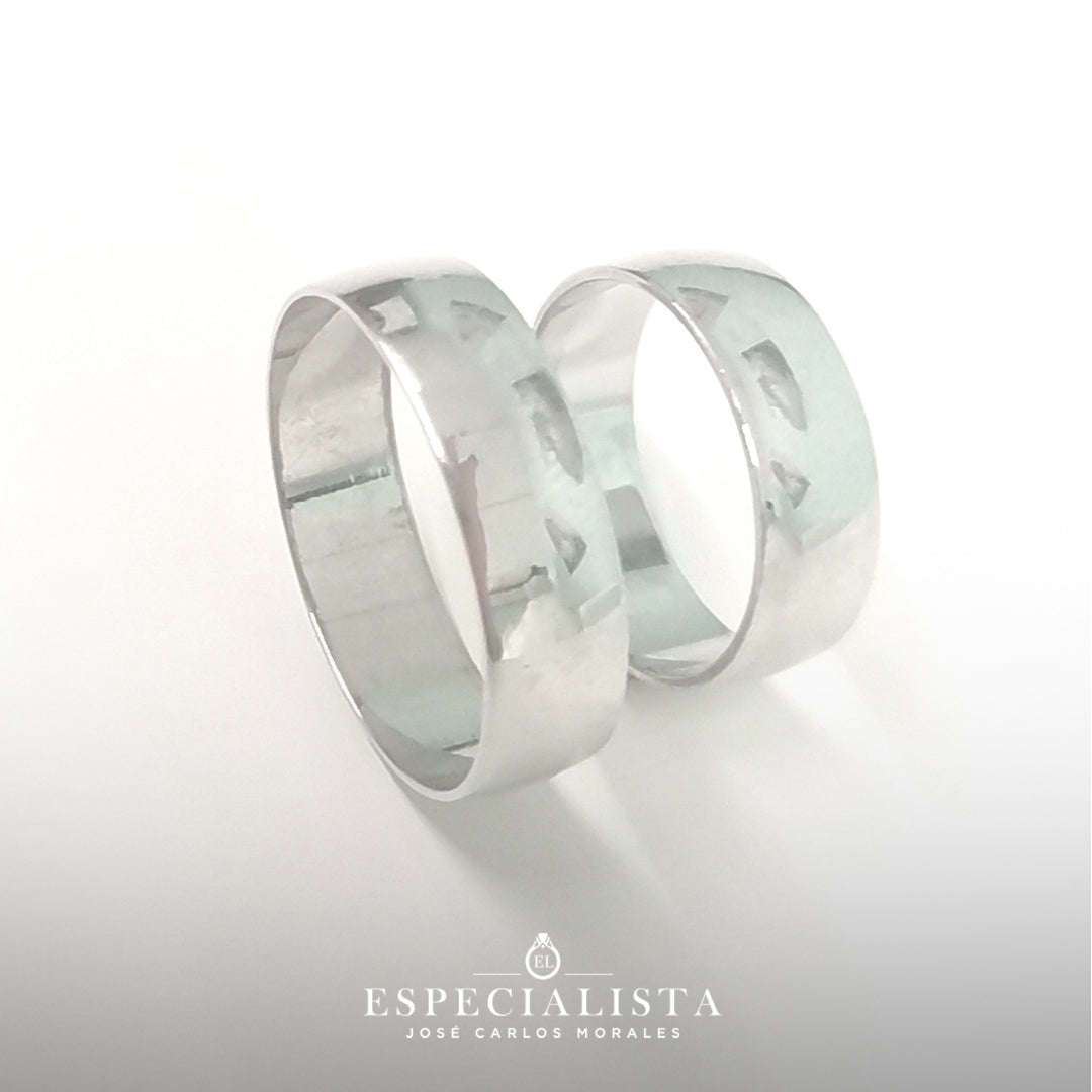 Par de argollas de matrimonio en oro blanco diseño tradicional.