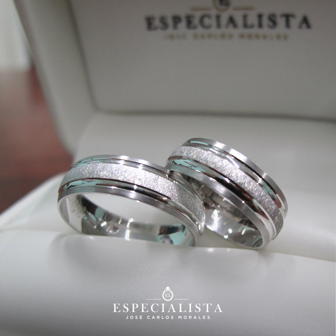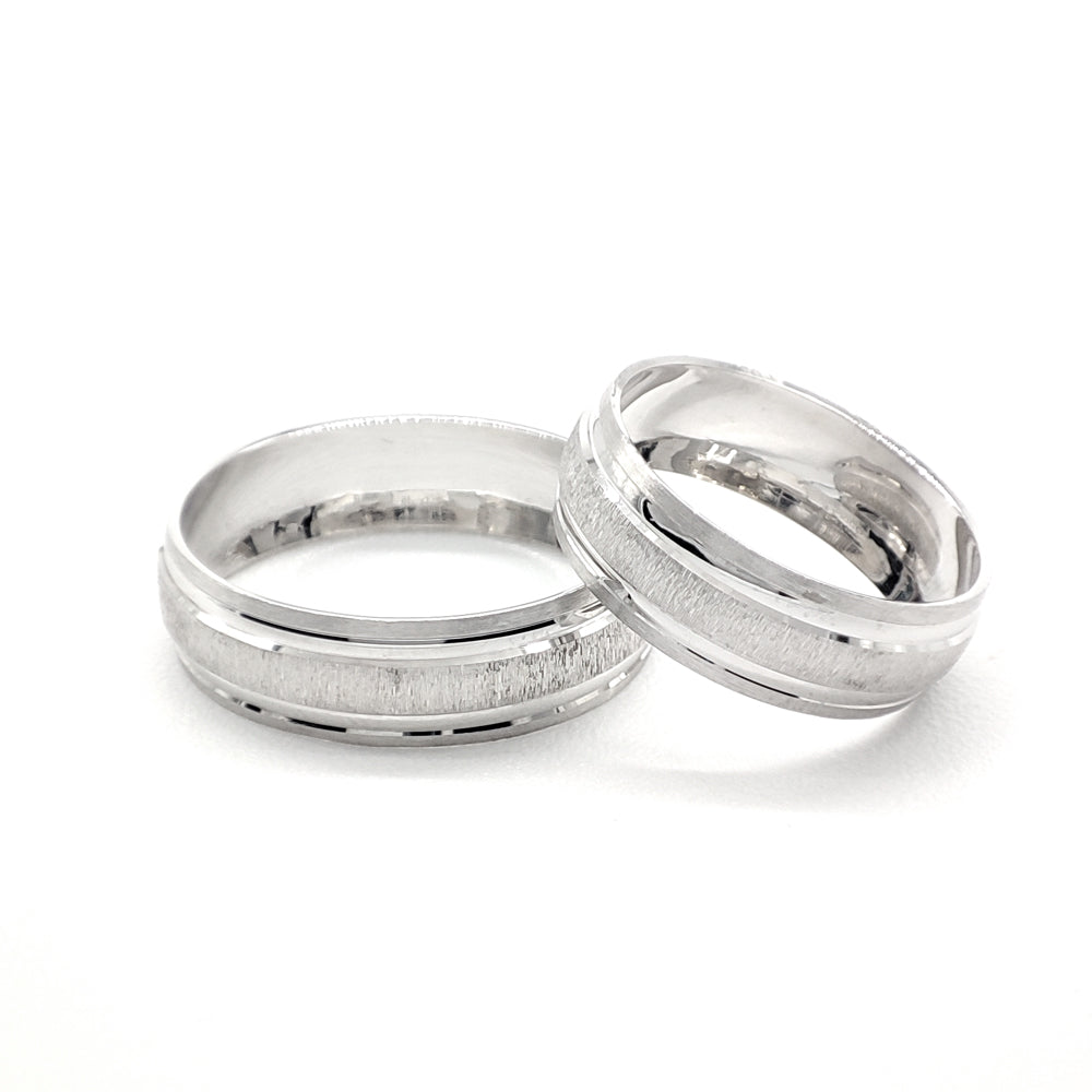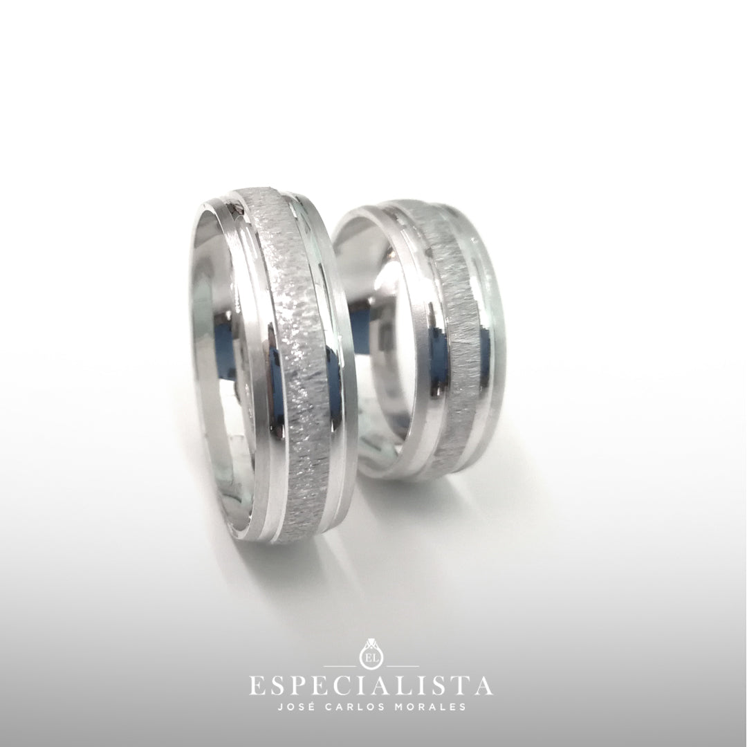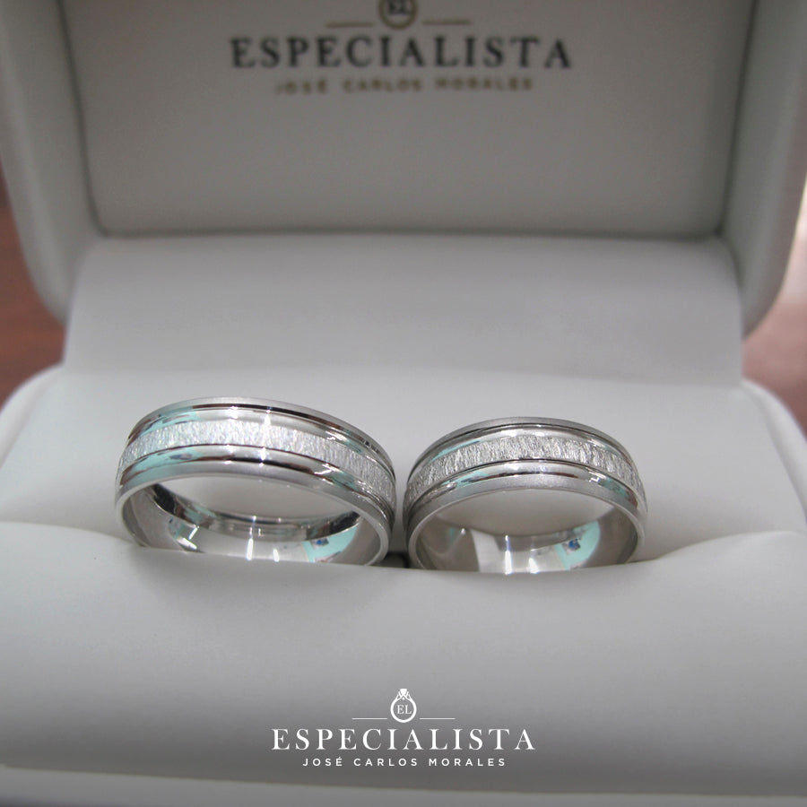 Par de Argollas de Matrimonio en oro blanco de 10 Kilates con acabado rugoso.