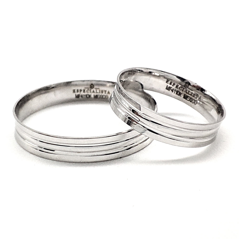 Par de Argollas de Matrimonio en oro blanco de 10 Kilates.