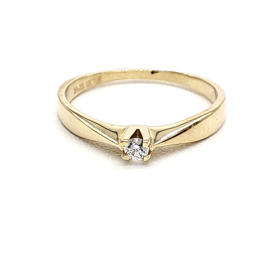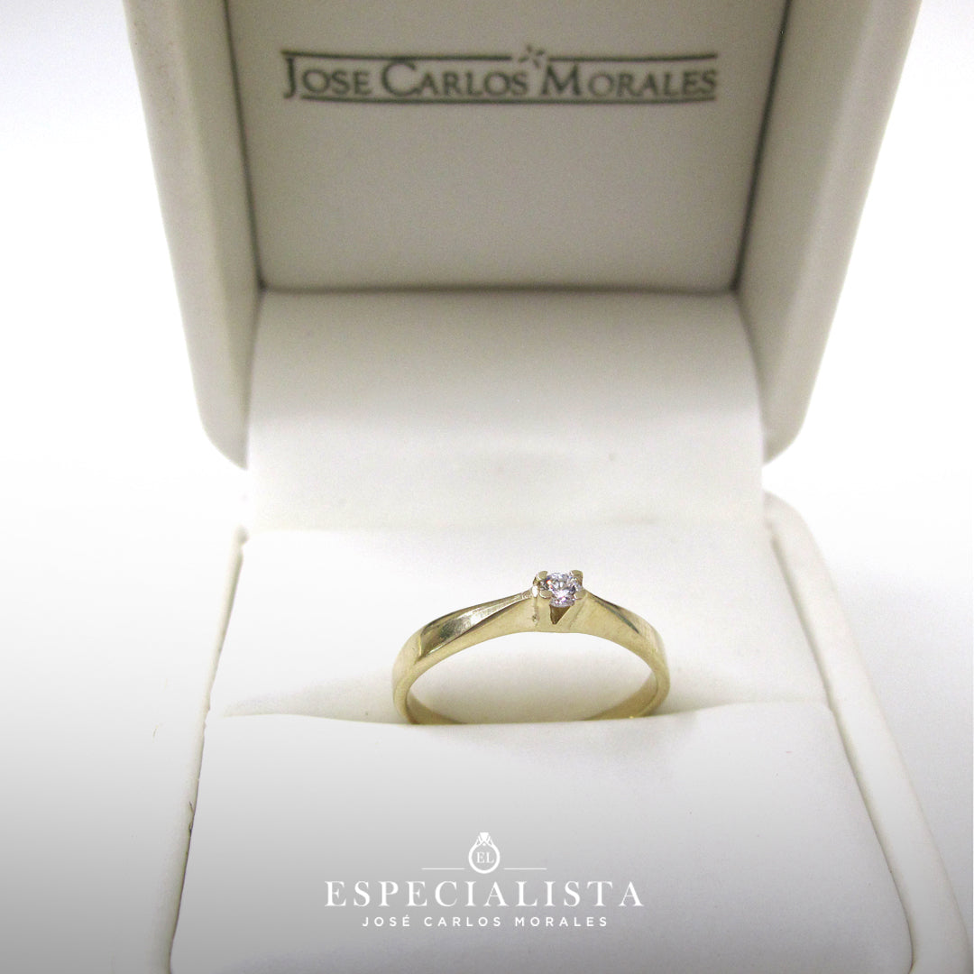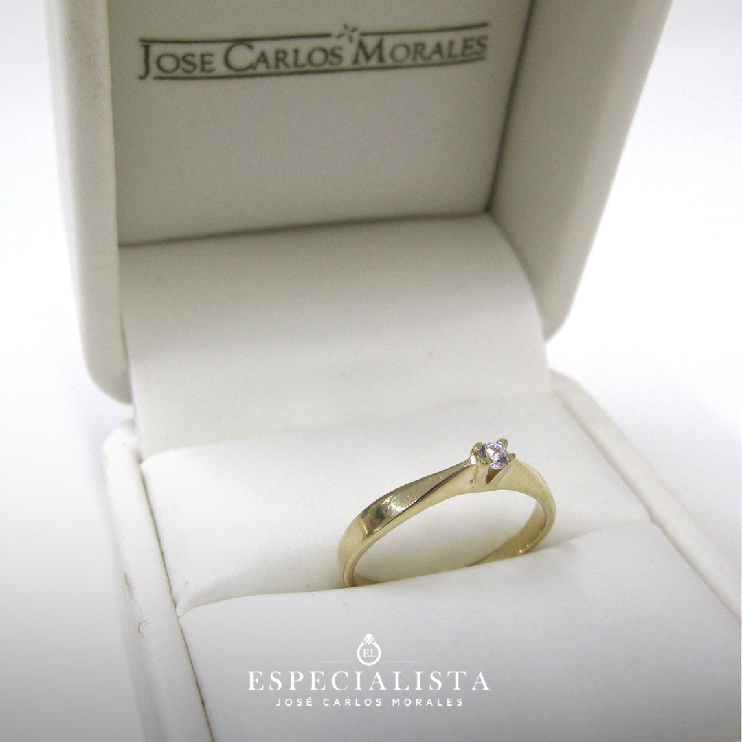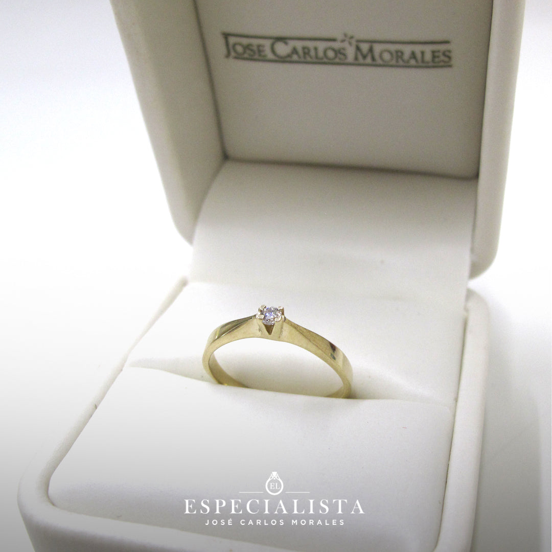 Anillo de compromiso en oro amarillo de 10 Kilates montado con circonia importada de alta calidad.
