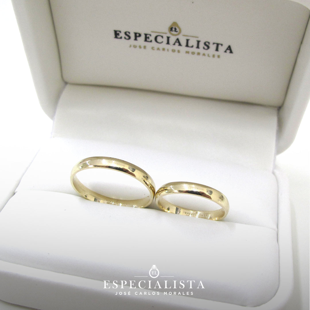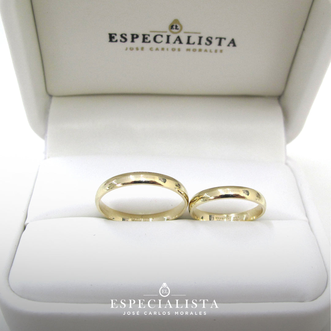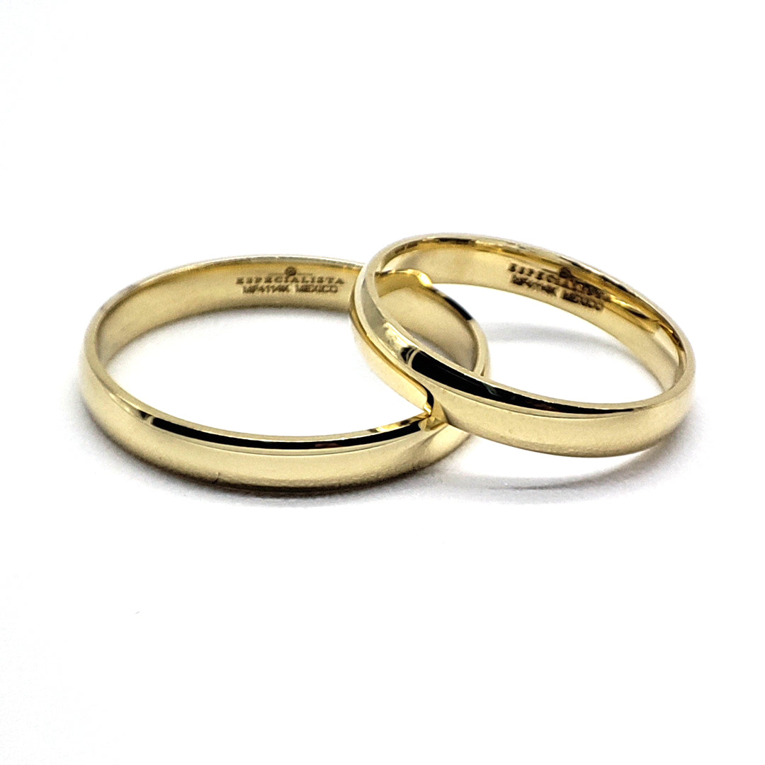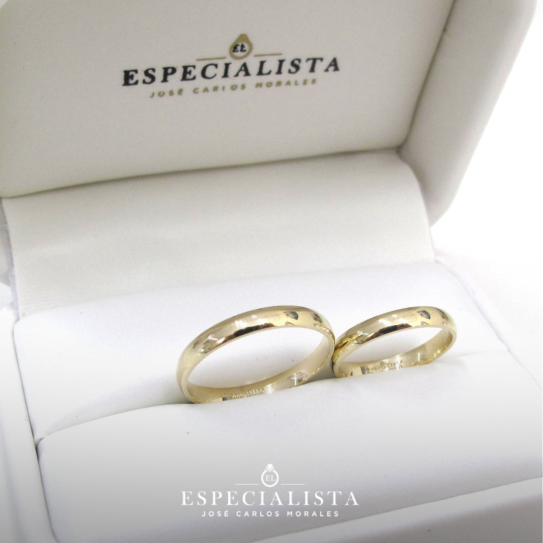 Par de argollas de Matrimonio estilo tradicionales en oro amarillo de 10 ó 14 Kilates.