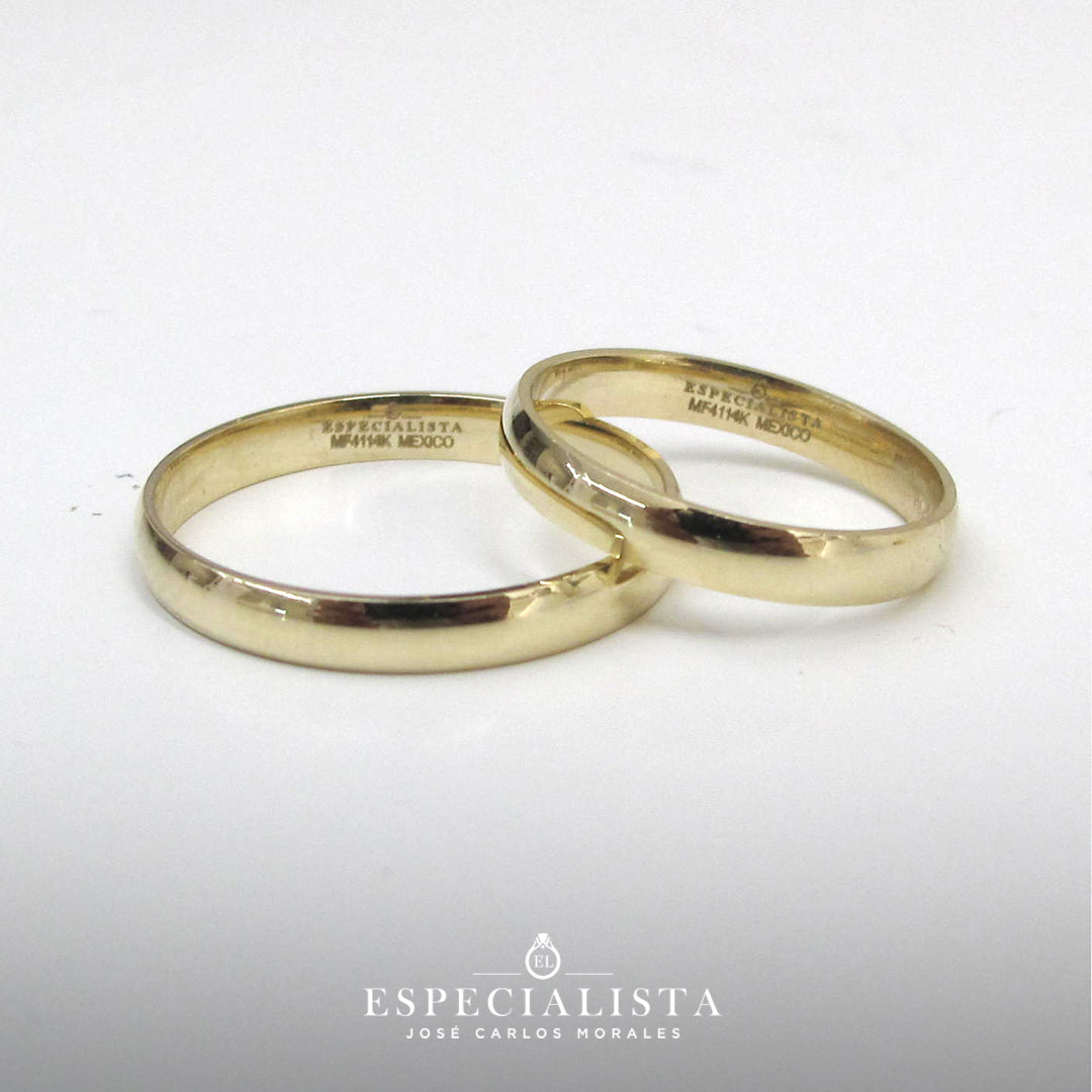 El precio marcado, incluye un par de argollas, grabado interior de los nombres y fecha de matrimonio, así como estuche de vinipiel blanco.