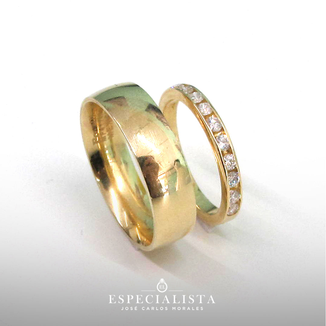 Argolla de matrimonio en oro amarillo de 14 kilates en 6mm y churumbela con 10 Diamantes naturales con un total de 40 puntos.