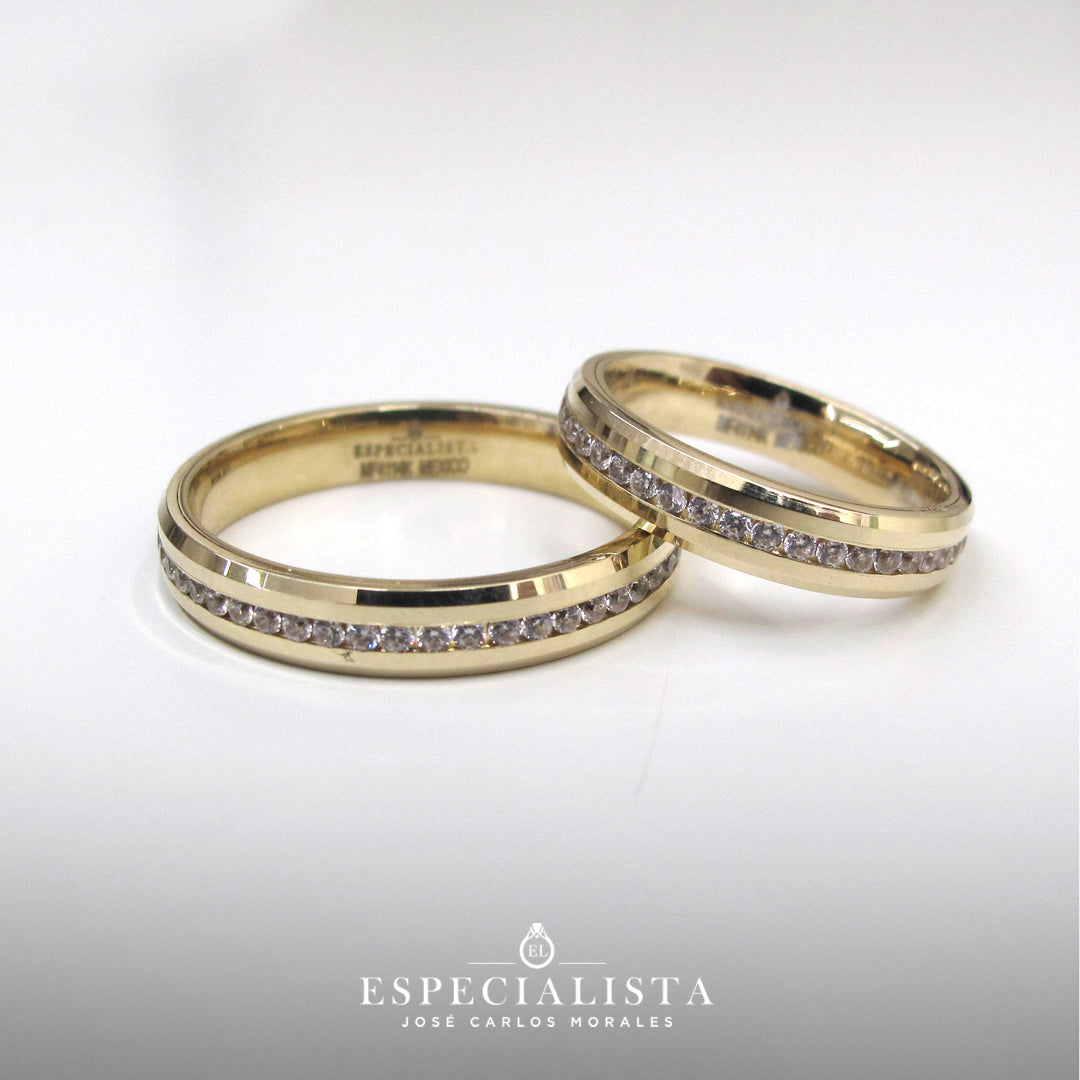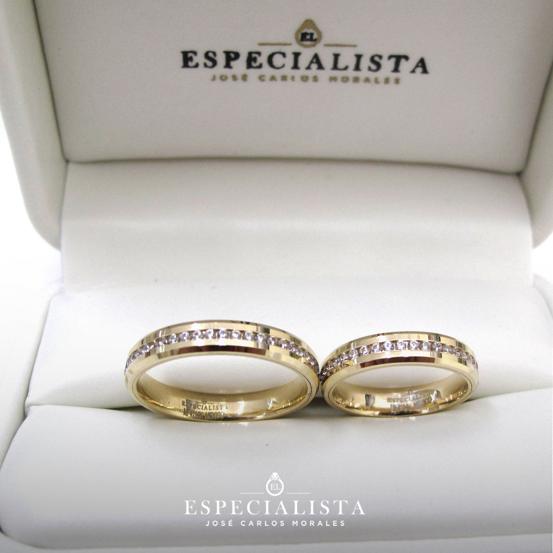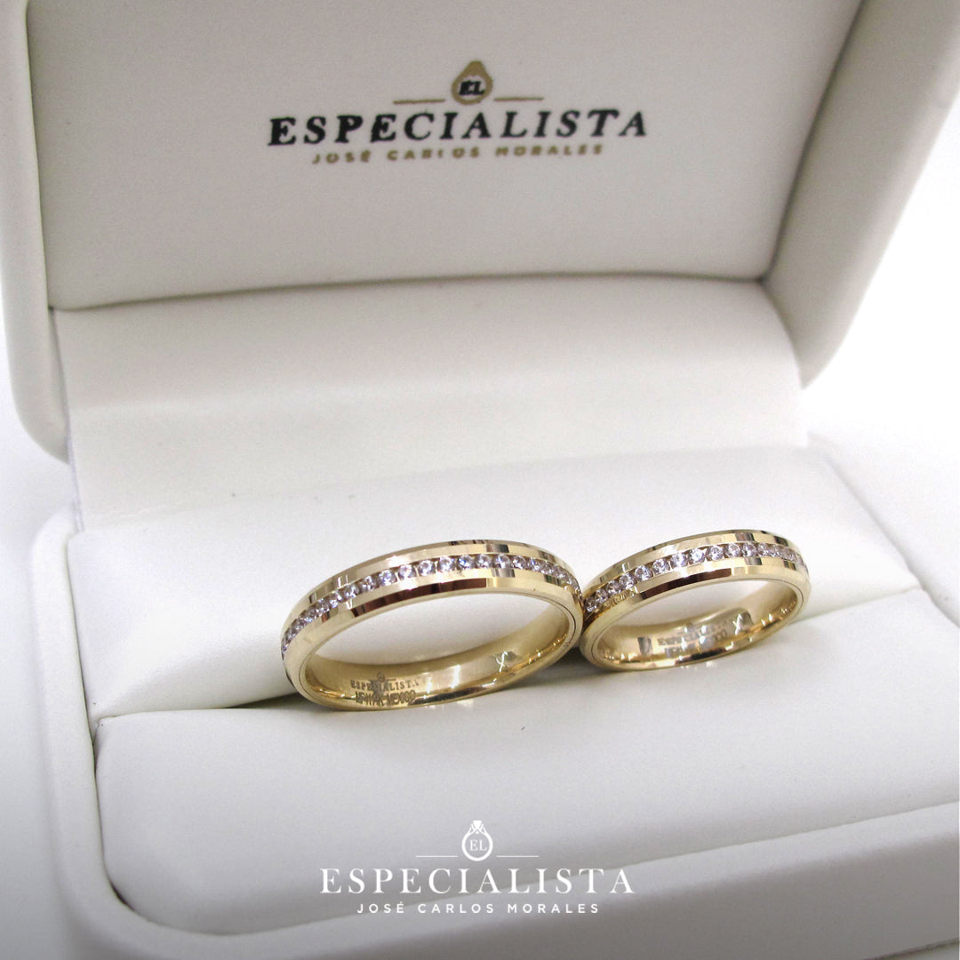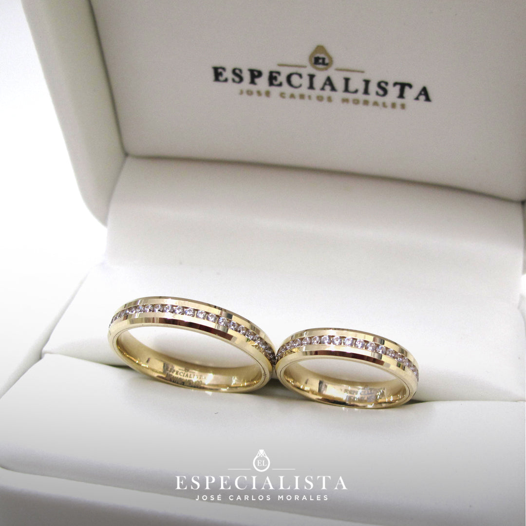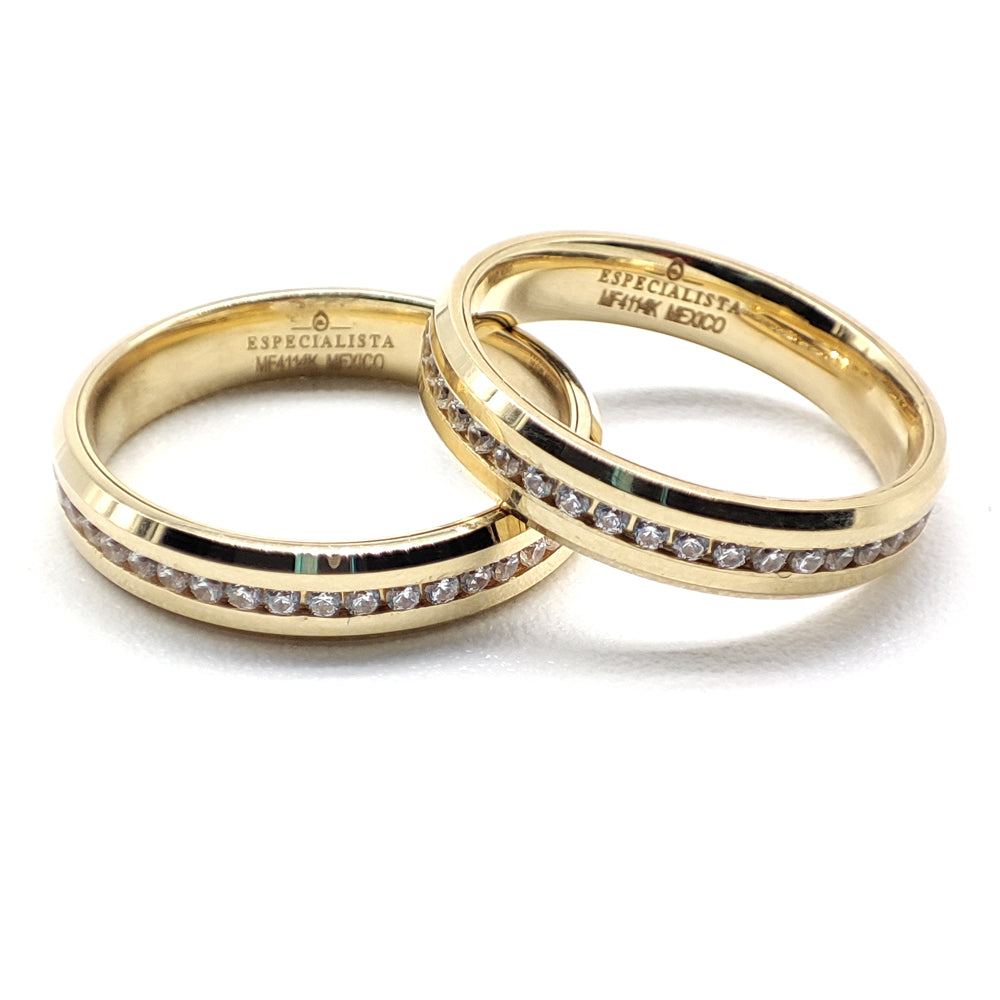 Par de Argollas de Matrimonio en oro amarillo diseño de forma tradicional con circonias