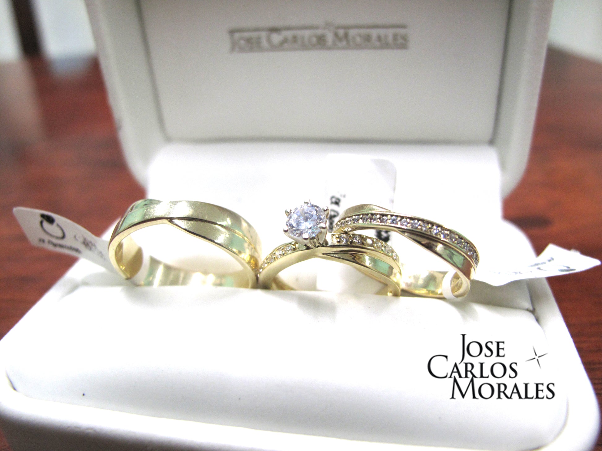 El precio marcado, incluye un par de argollas y un anillo de compromiso, con la descripción arriba mencionada, hecho en la medida que se solicite en un elegante estuche de vinipiel blanco.