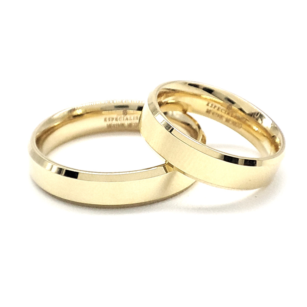 Par de Argollas de Matrimonio en oro amarillo con biceles laterales.