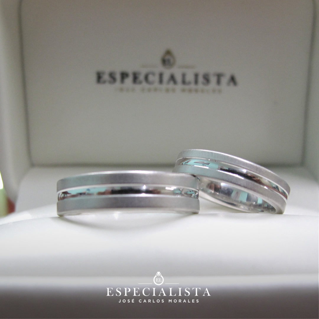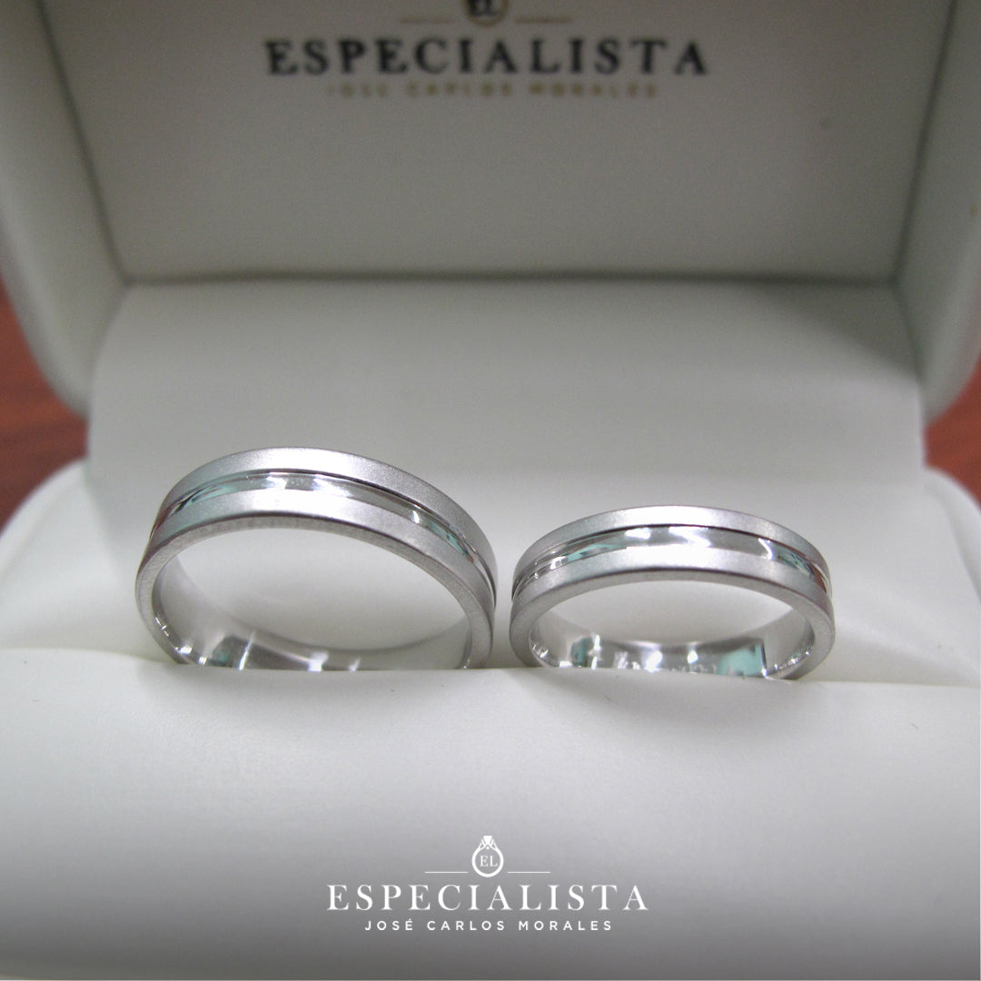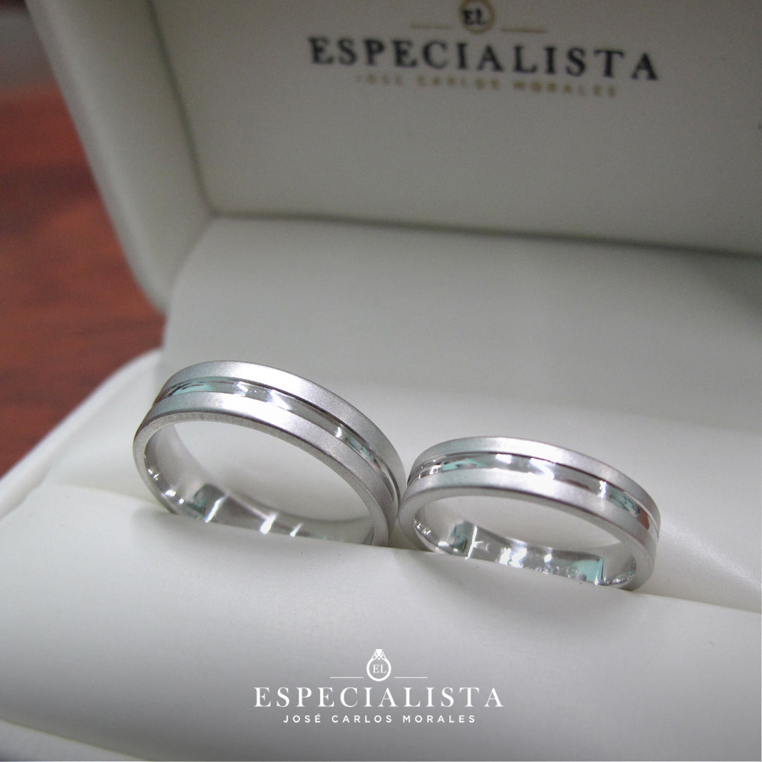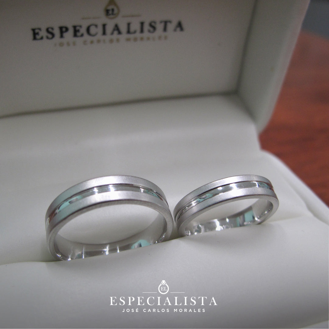 El precio marcado incluye un par de argollas, grabado interior de los nombres y fecha de matrimonio, así como estuche.