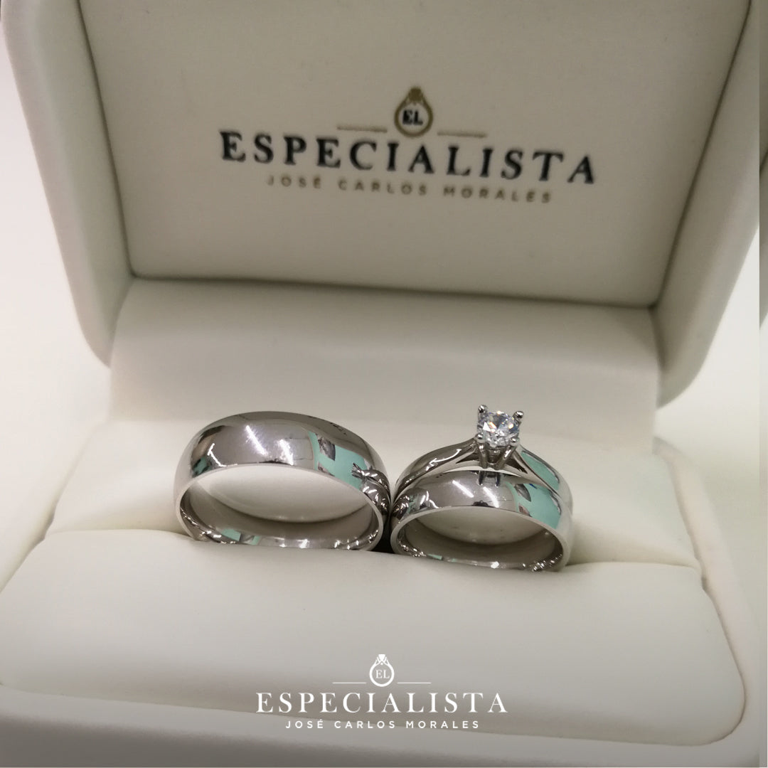 El precio marcado, incluye un par de argollas, y un anillo de compromiso, con la descripción arriba mencionada,  hecho en la medida que se solicite en un elegante estuche de vinipiel blanco.