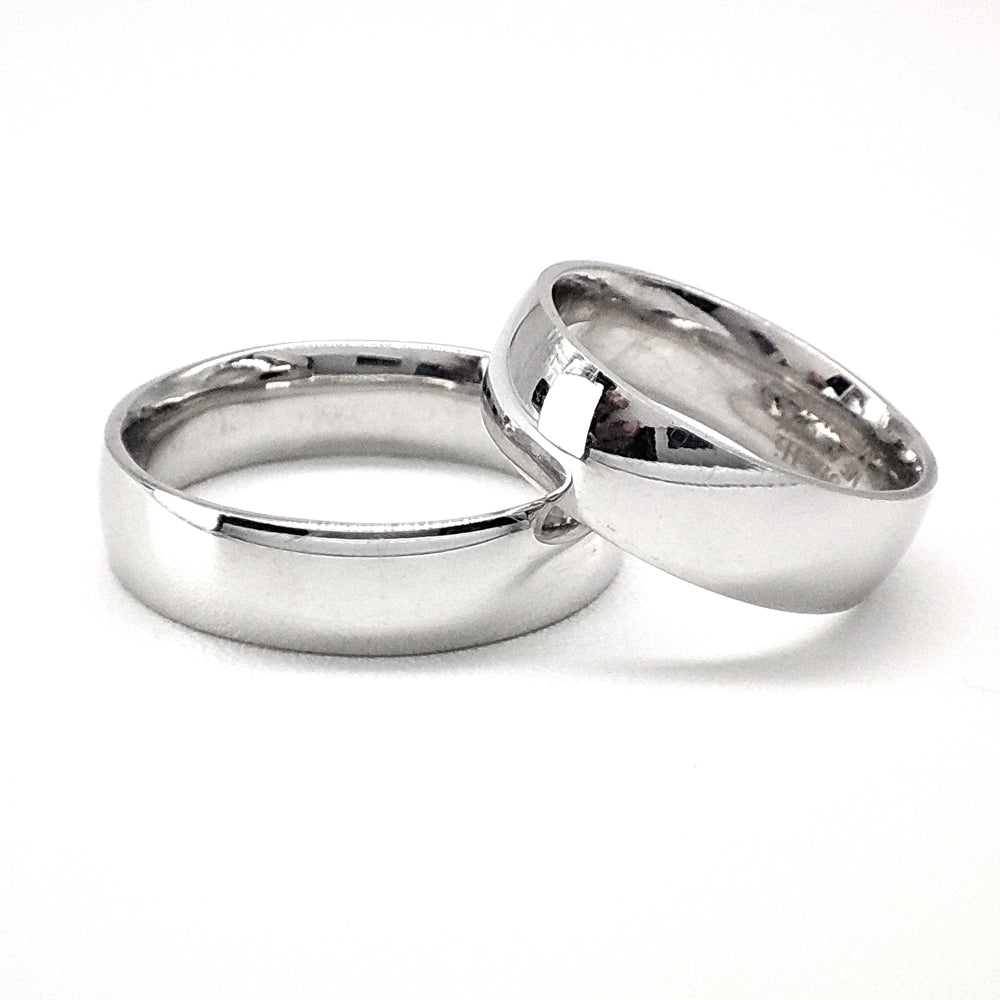 Par de argollas de matrimonio en oro blanco diseño tradicional media caña.
