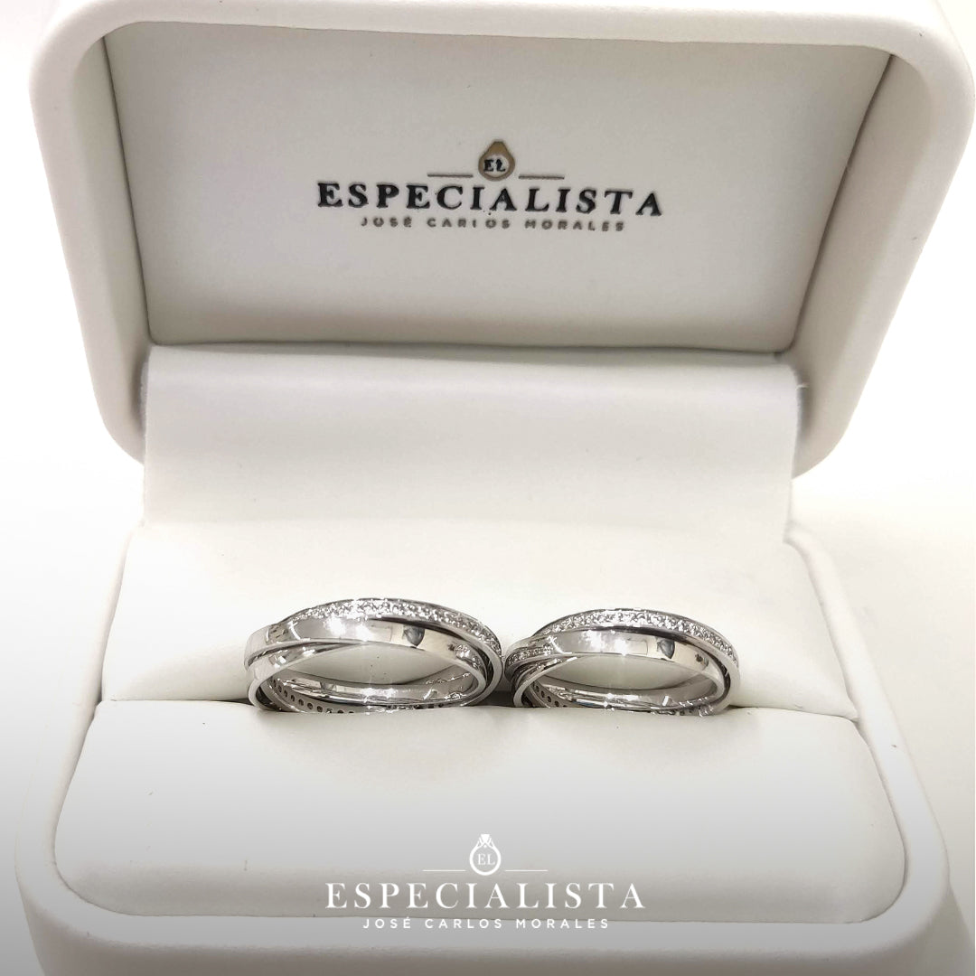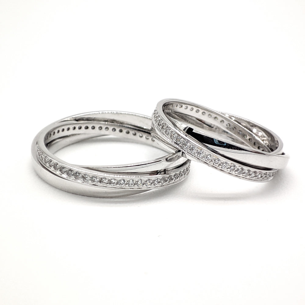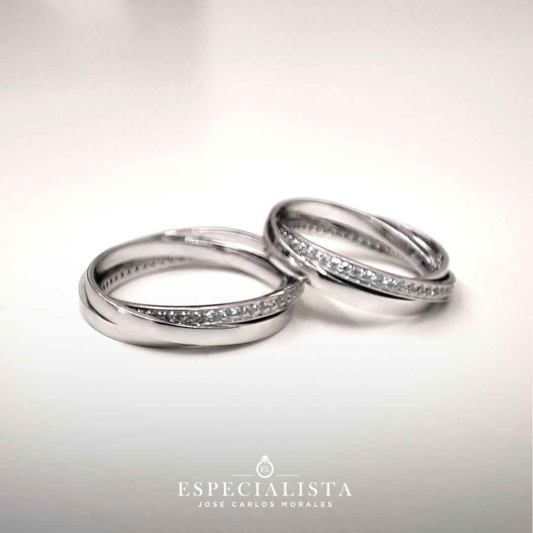Par de Argollas de Matrimonio en oro blanco con diseño triple entrelazado