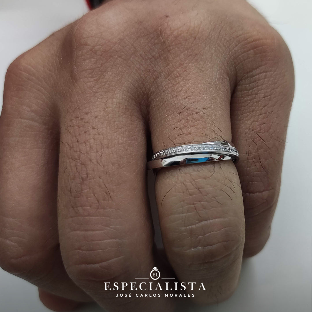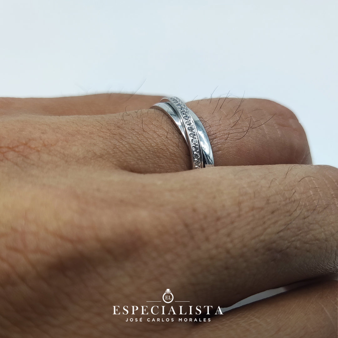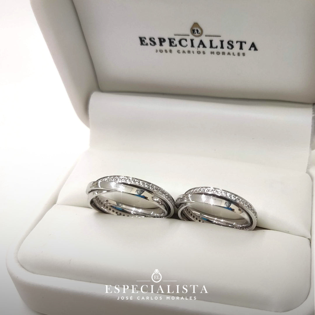 Par de Argollas de Matrimonio en oro blanco con diseño triple entrelazado