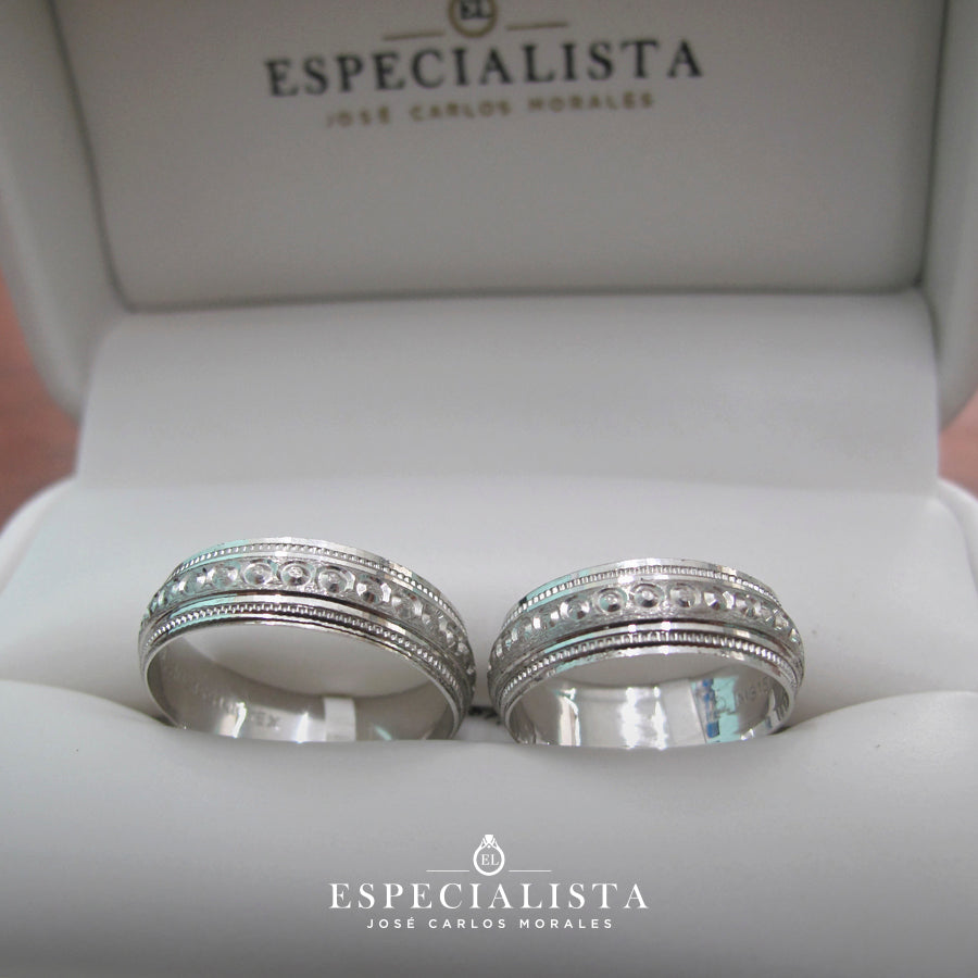 Par de argollas de matrimonio en oro blanco de 14 Kilates