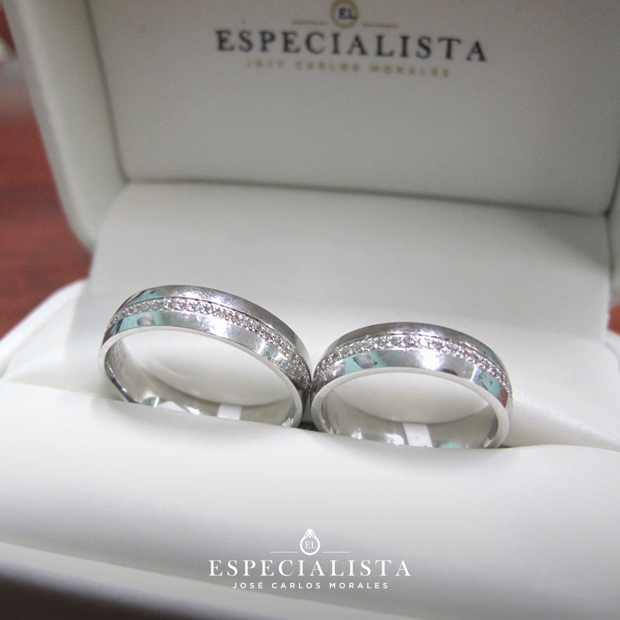 El precio marcado incluye un par de argollas, grabado interior de los nombres y fecha de matrimonio, así como estuche.