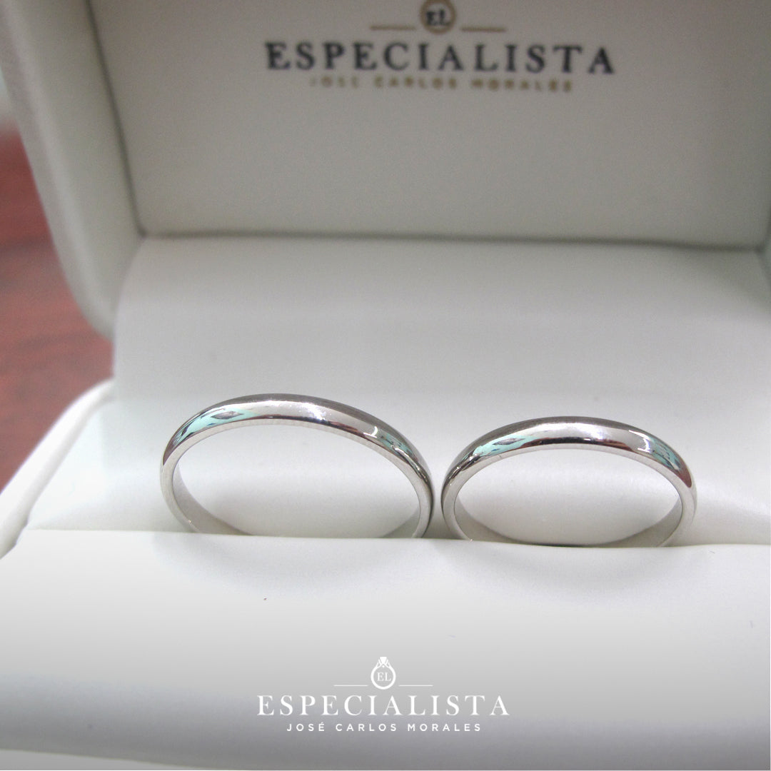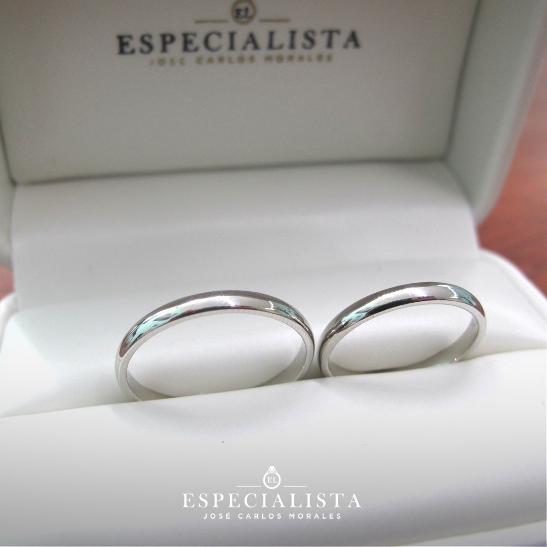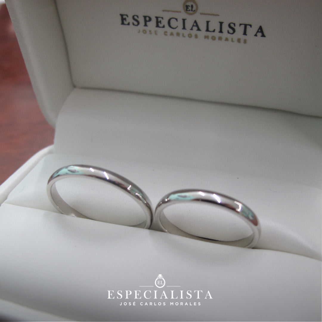 Par de Argollas de Matrimonio tradicionales en oro Blanco
