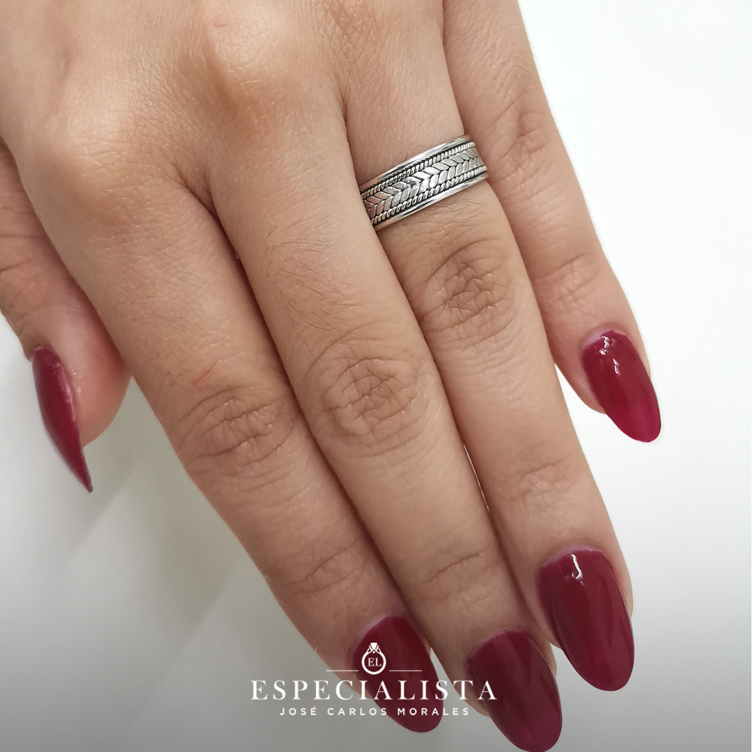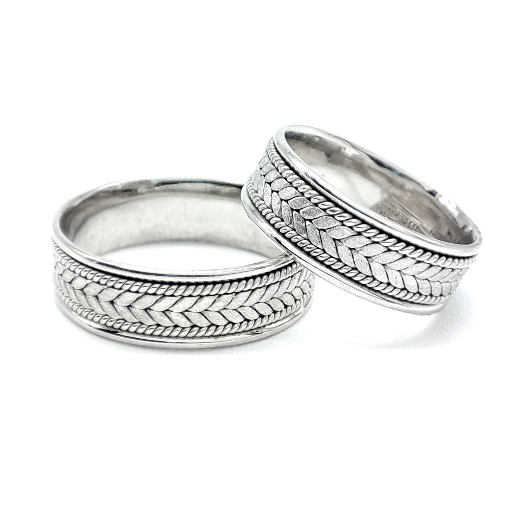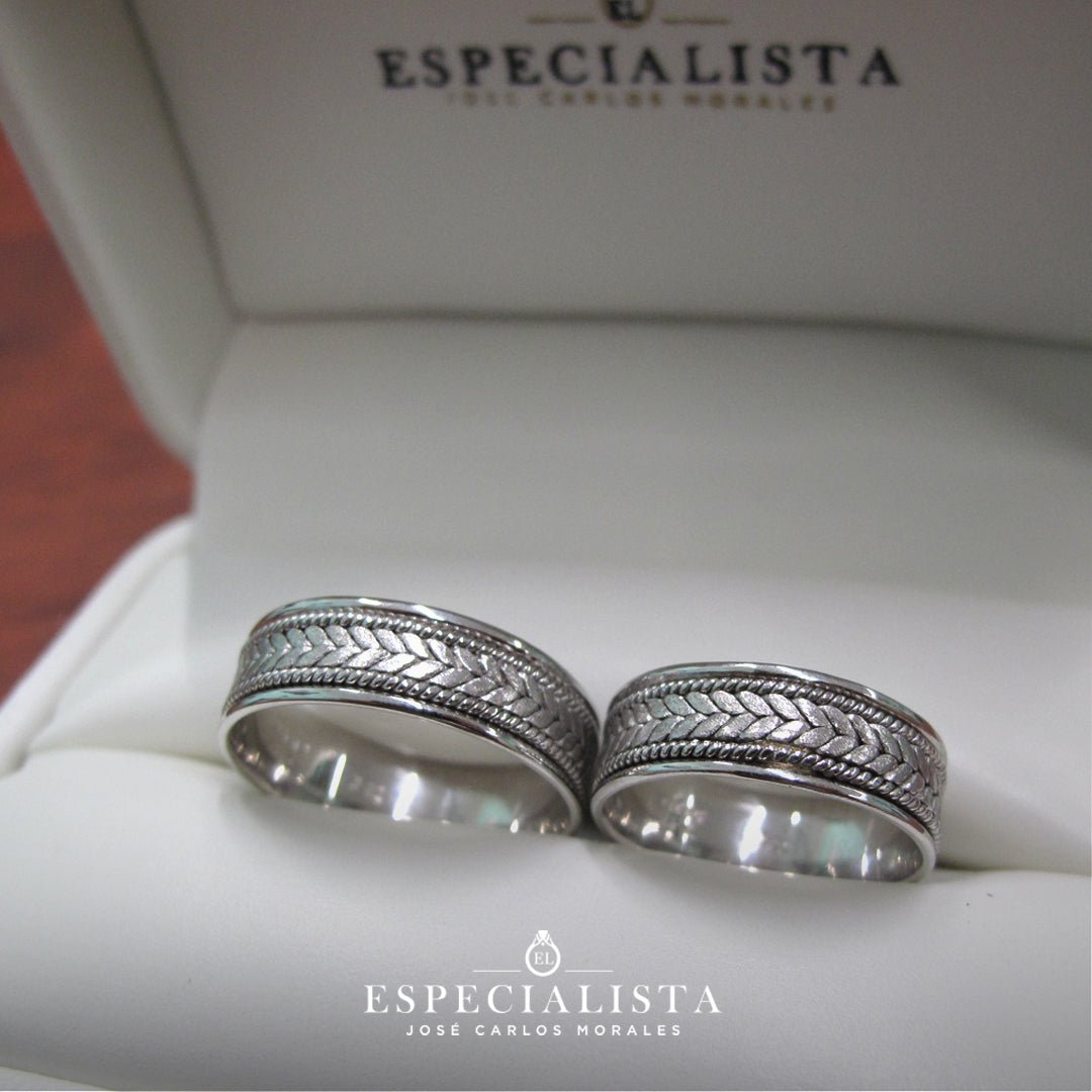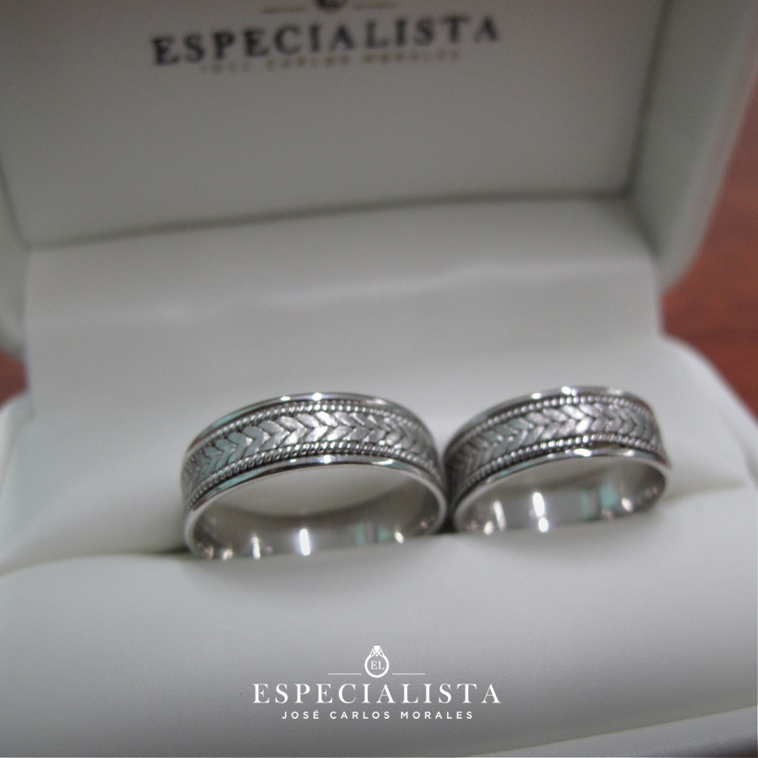 Par de argollas de matrimonio trenzadas, hechas a mano en oro blanco de 14 Kilates.
