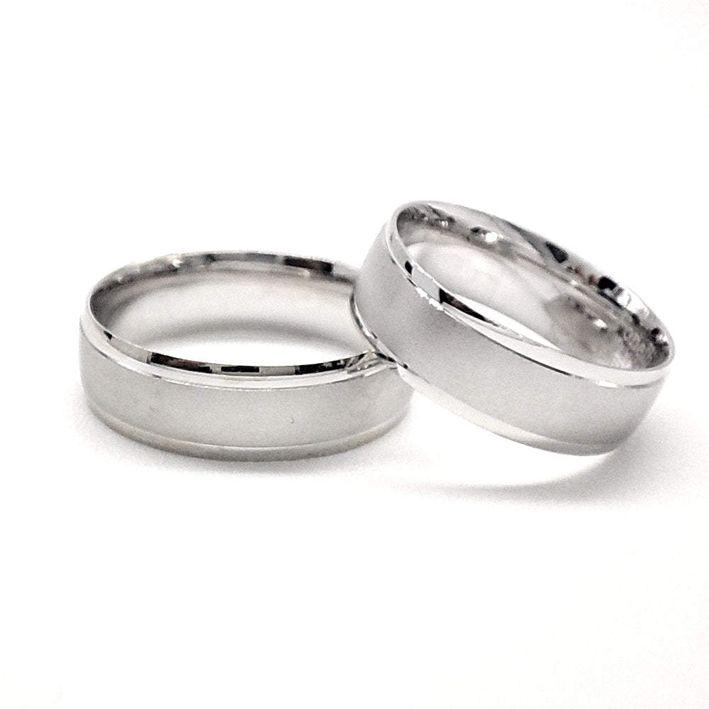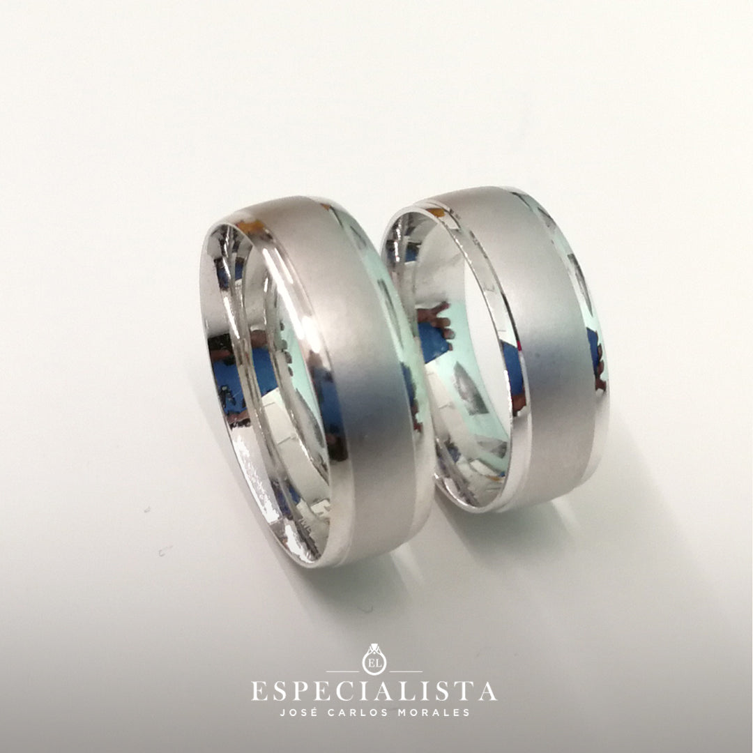 Par de argollas de matrimonio en oro blanco diseño en línea mate.