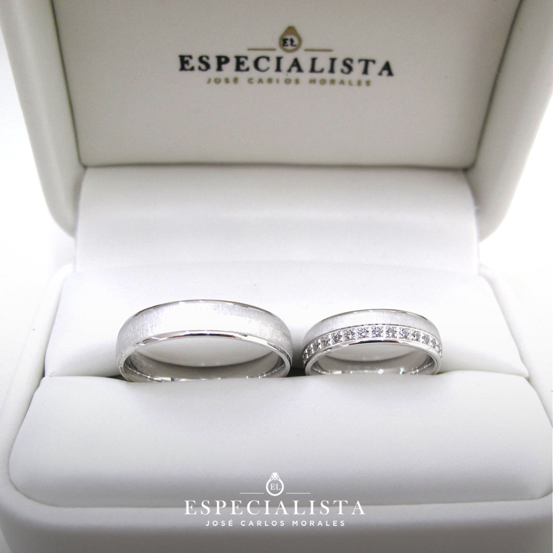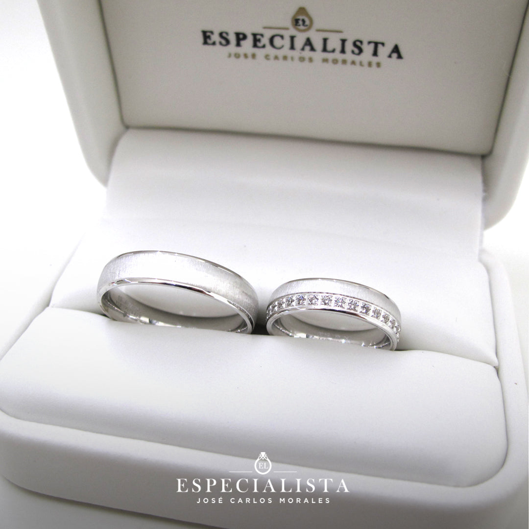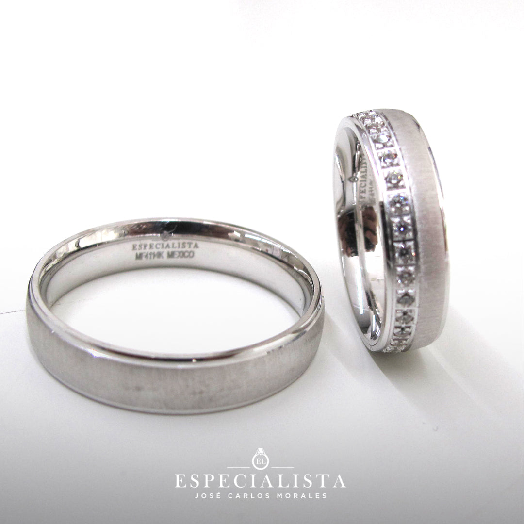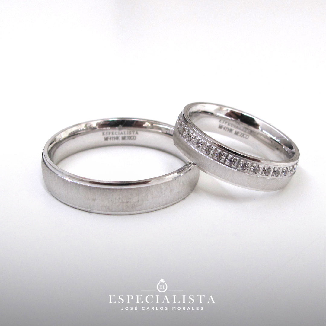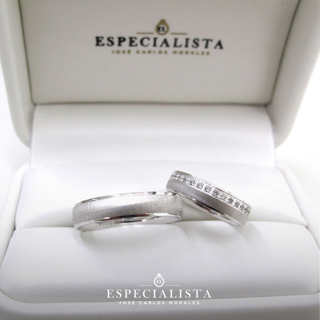 Argollas de Matrimonio en oro blanco de 10 o 14 kilates con acabado mate.