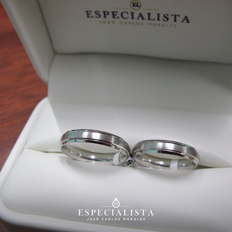 El precio marcado incluye un par de argollas, grabado interior de los nombres y fecha de matrimonio, así como estuche.