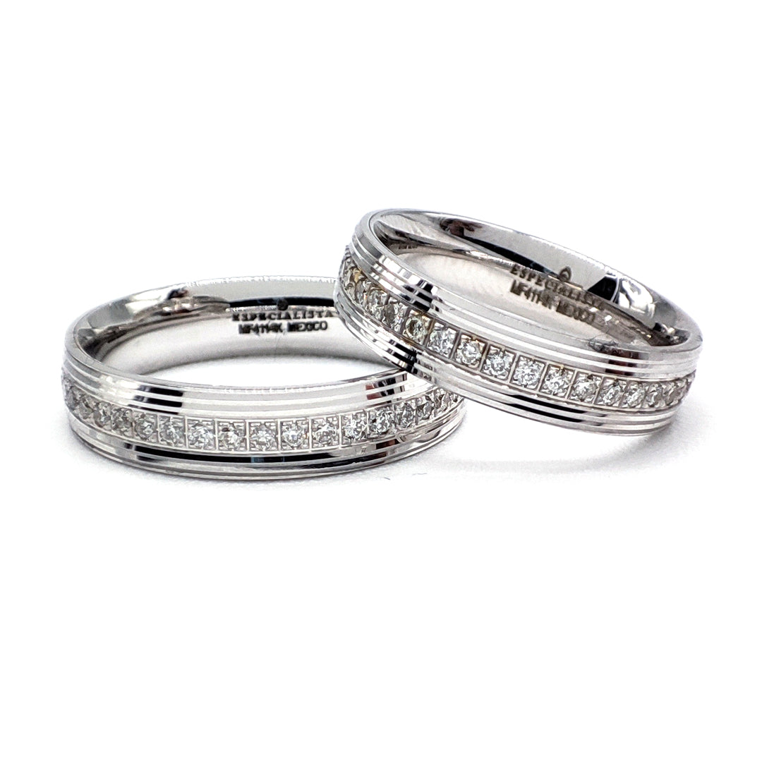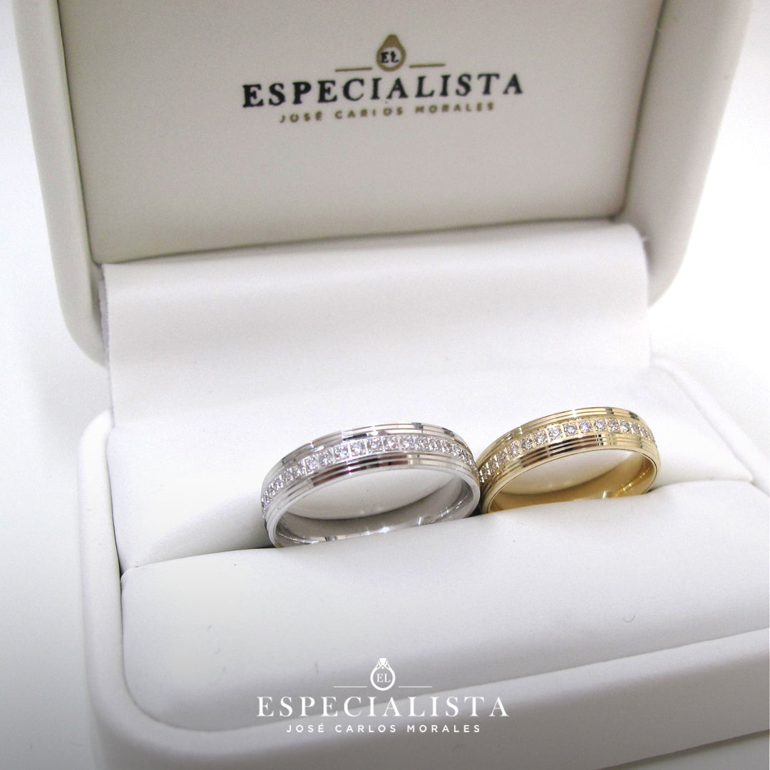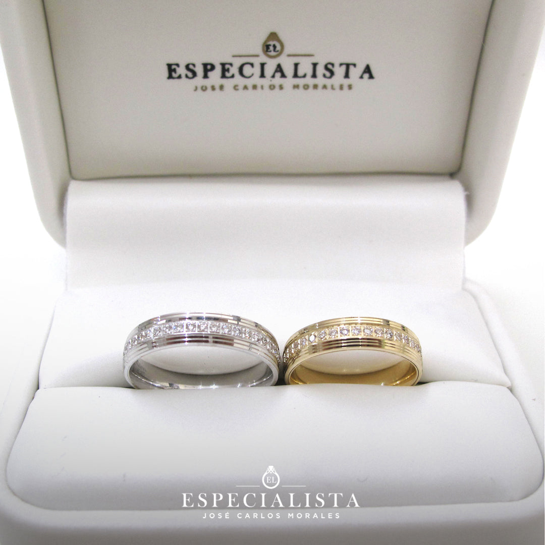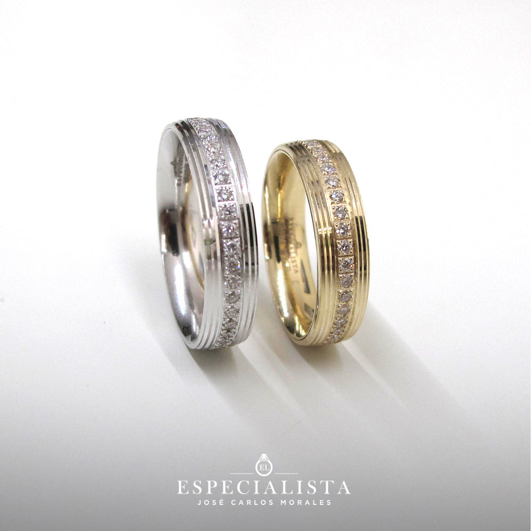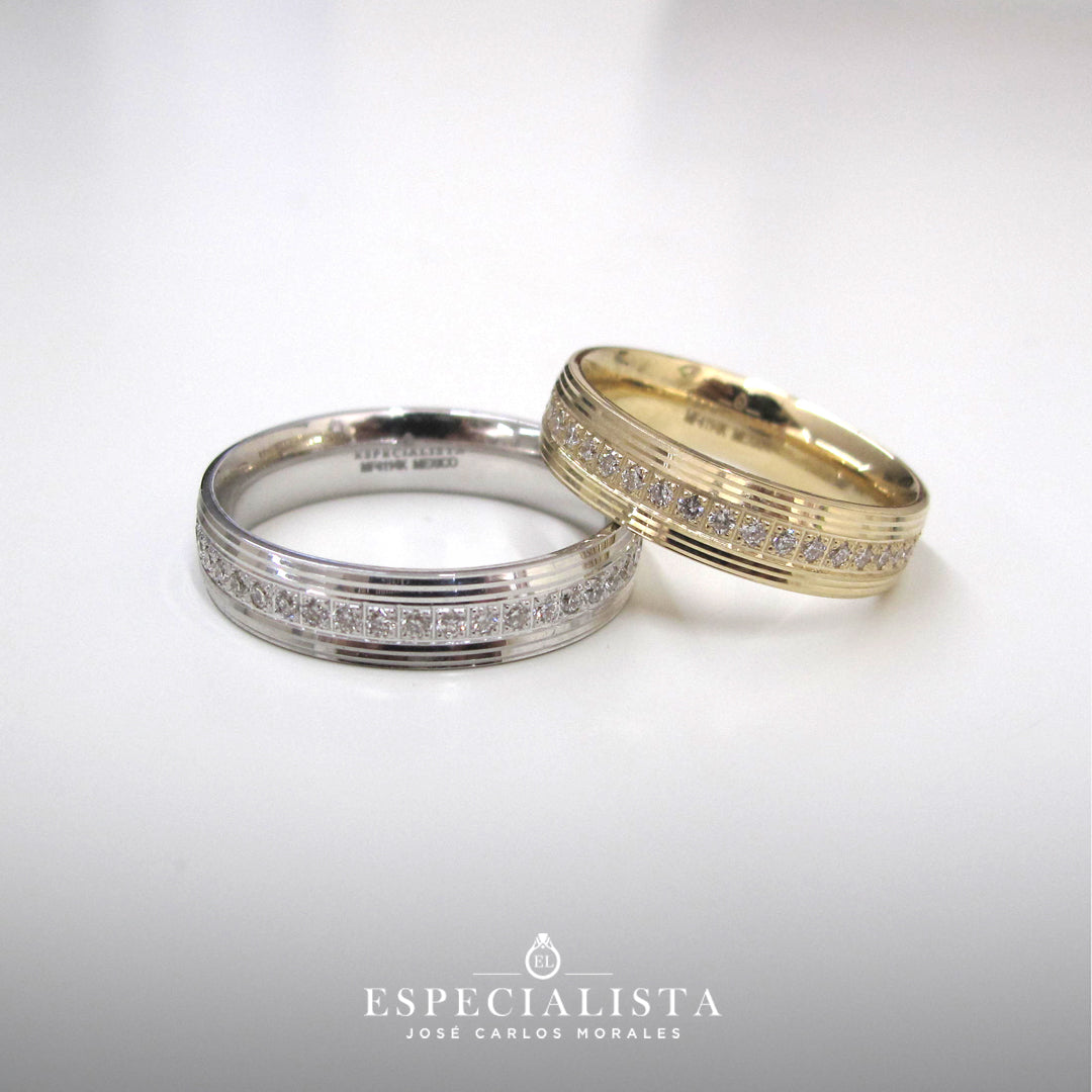 Par de Argollas de Matrimonio en oro blanco ó amarillo con Diamantes naturales.