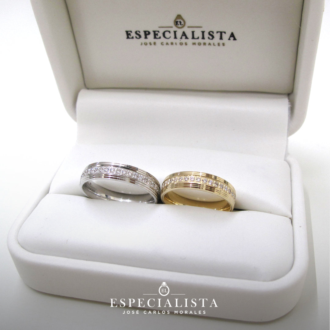 El precio marcado, incluye un par de argollas, grabado interior de los nombres y fecha de matrimonio, así como estuche de vinipiel blanco.