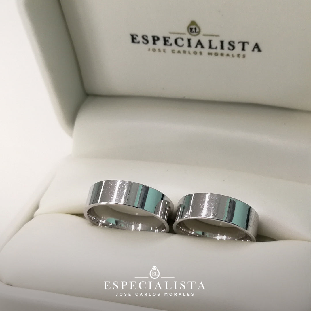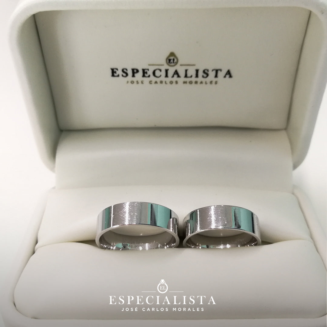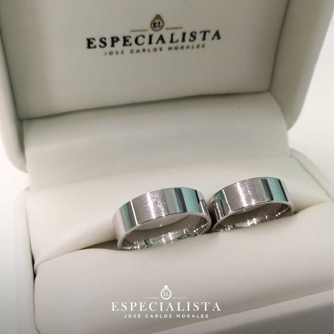 El precio marcado incluye un par de argollas, grabado interior de los nombres y fecha de matrimonio, así como estuche.