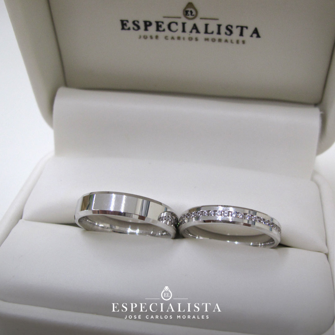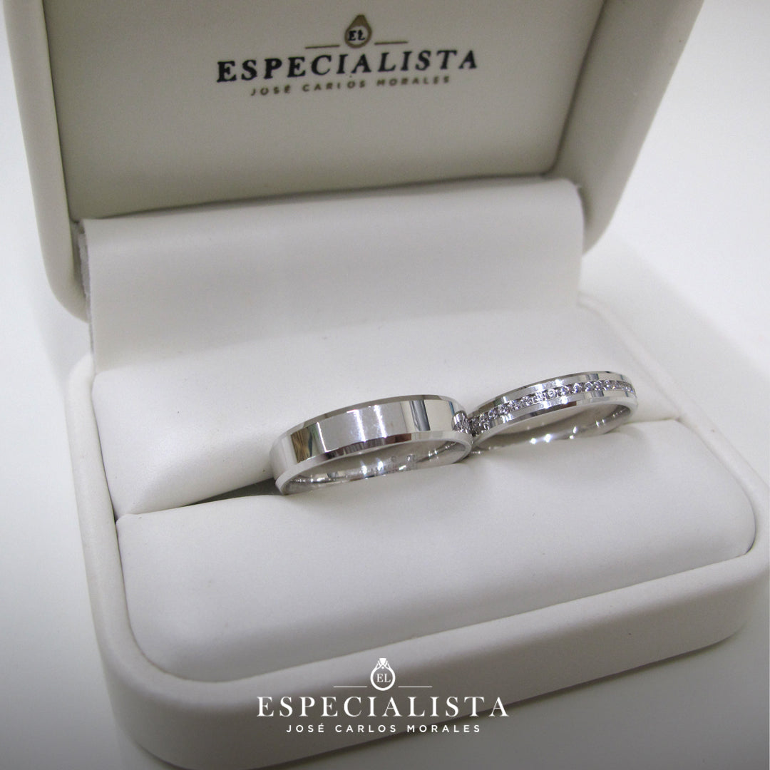 El precio marcado, incluye un par de argollas, grabado interior de los nombres y fecha de matrimonio, así como estuche de vinipiel blanco.