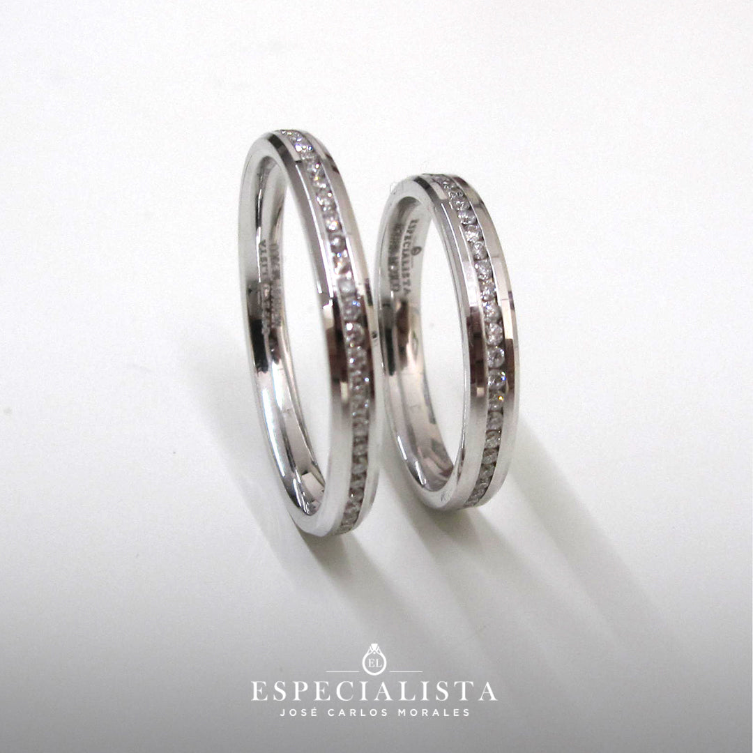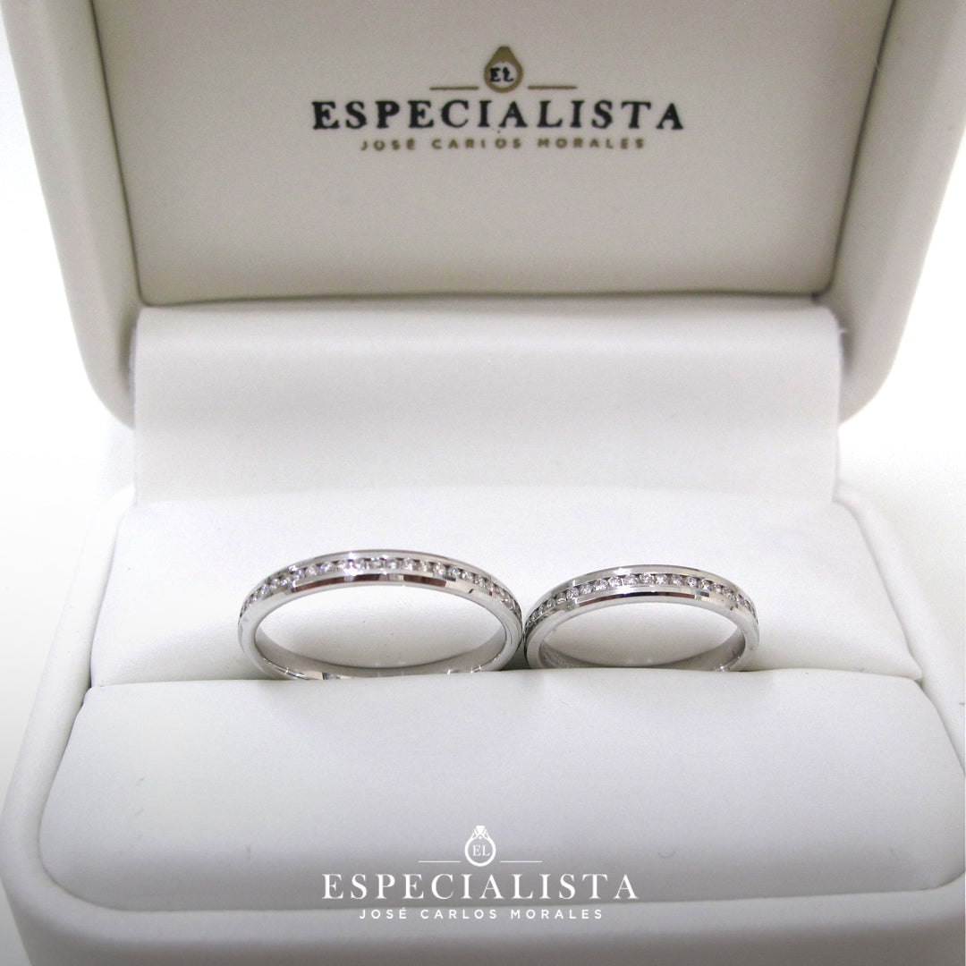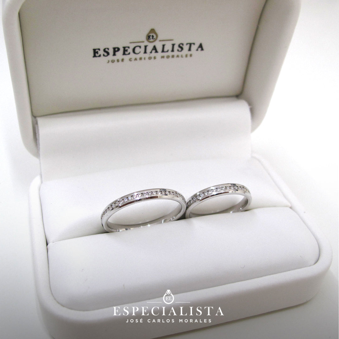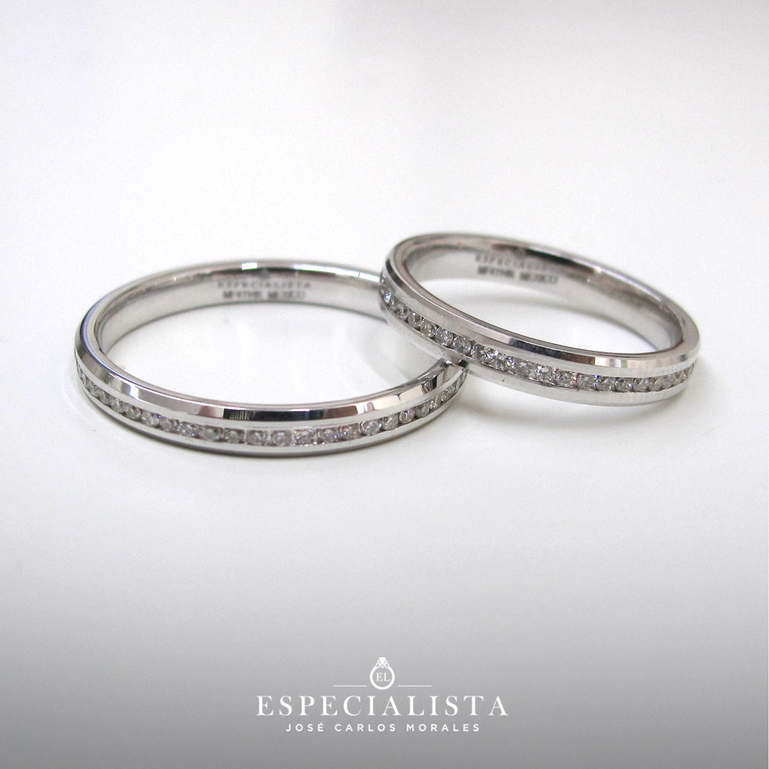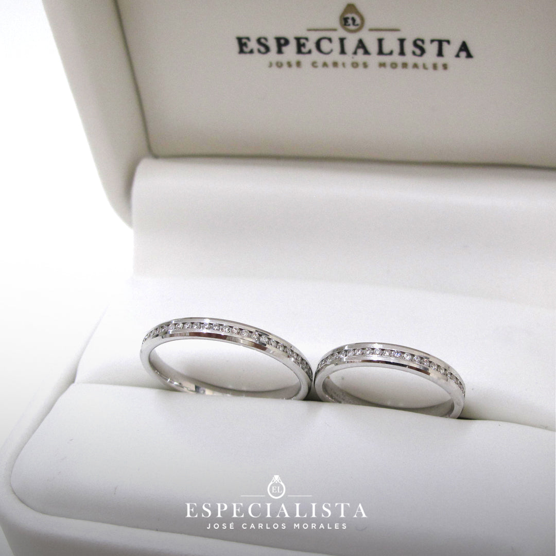 Par de Argollas de Matrimonio en oro blanco con Diamantes naturales.