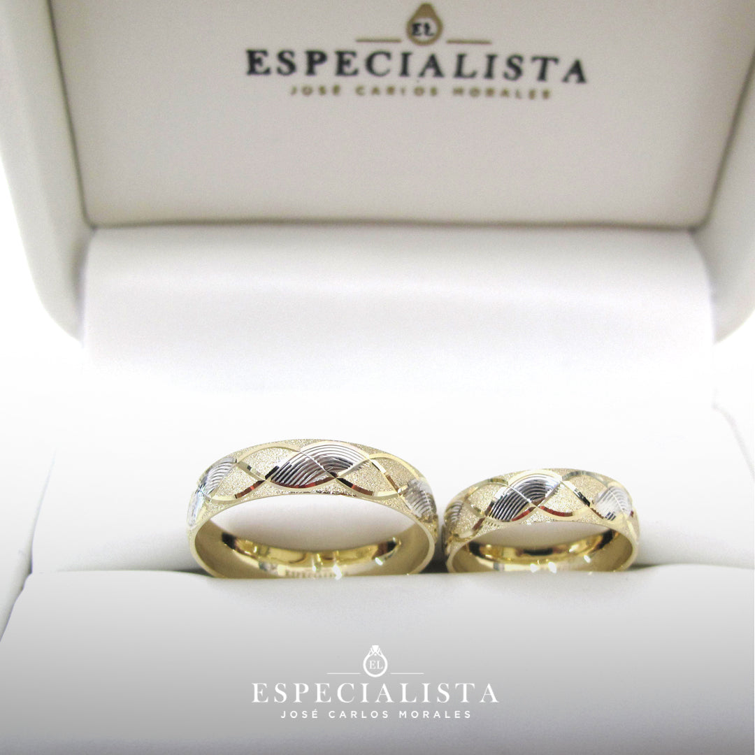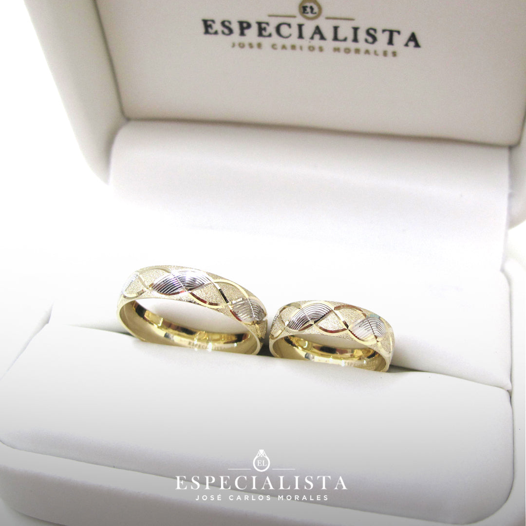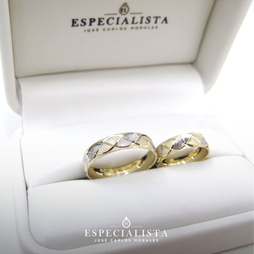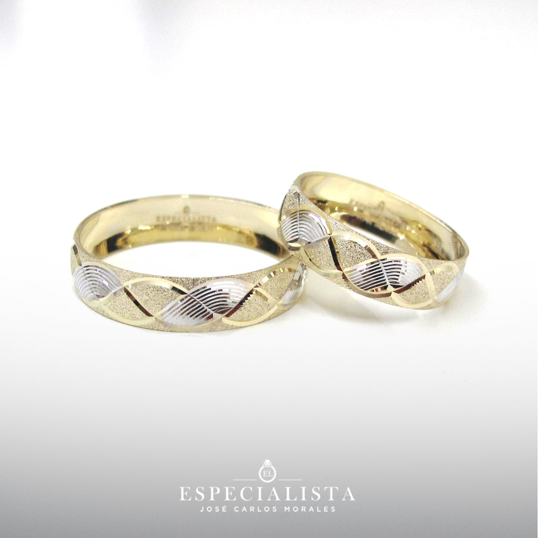 Par de Argollas de Matrimonio en oro combinado en blanco y amarillo