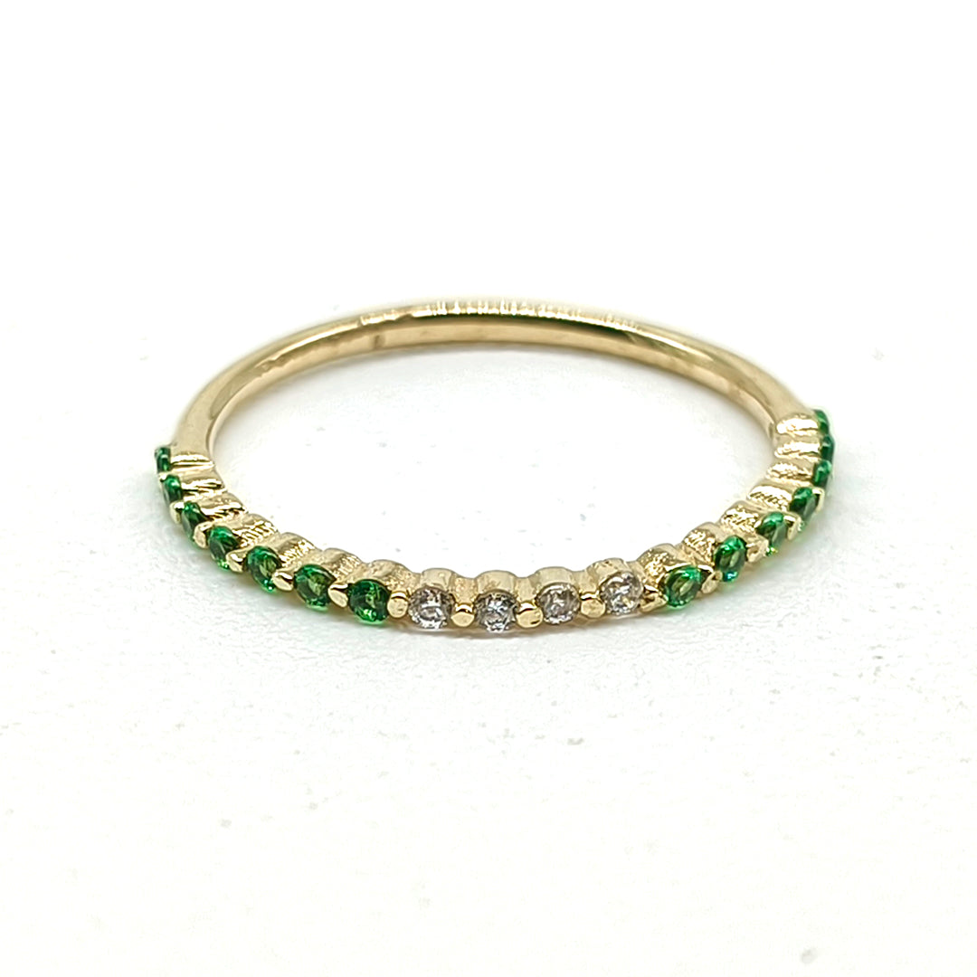 Churumbela en oro amarillo de 14 Kilates con circonias verdes y blancas