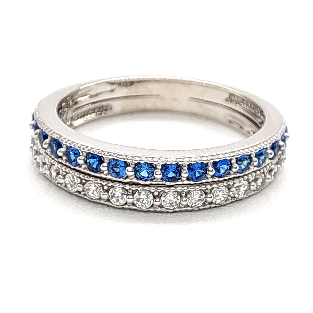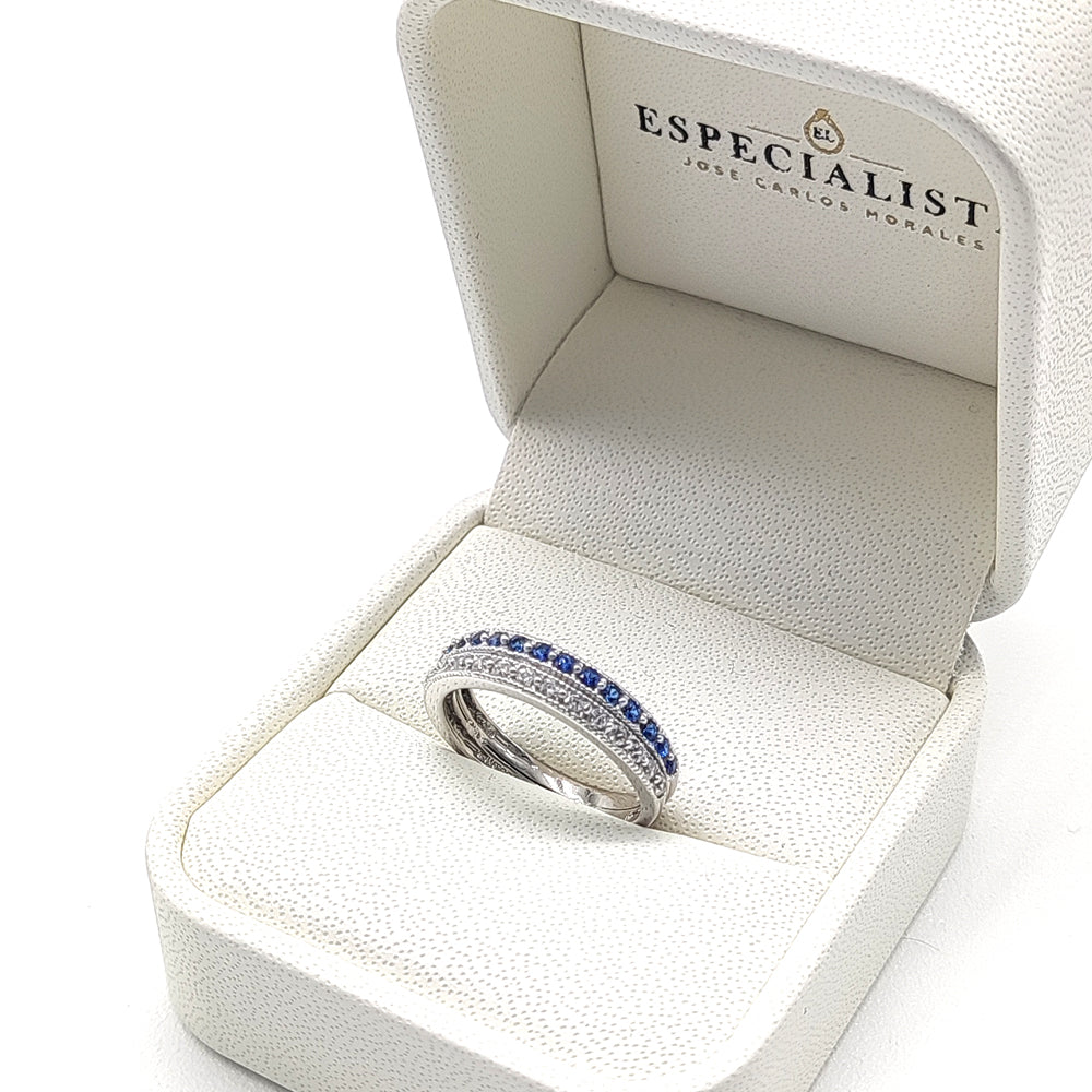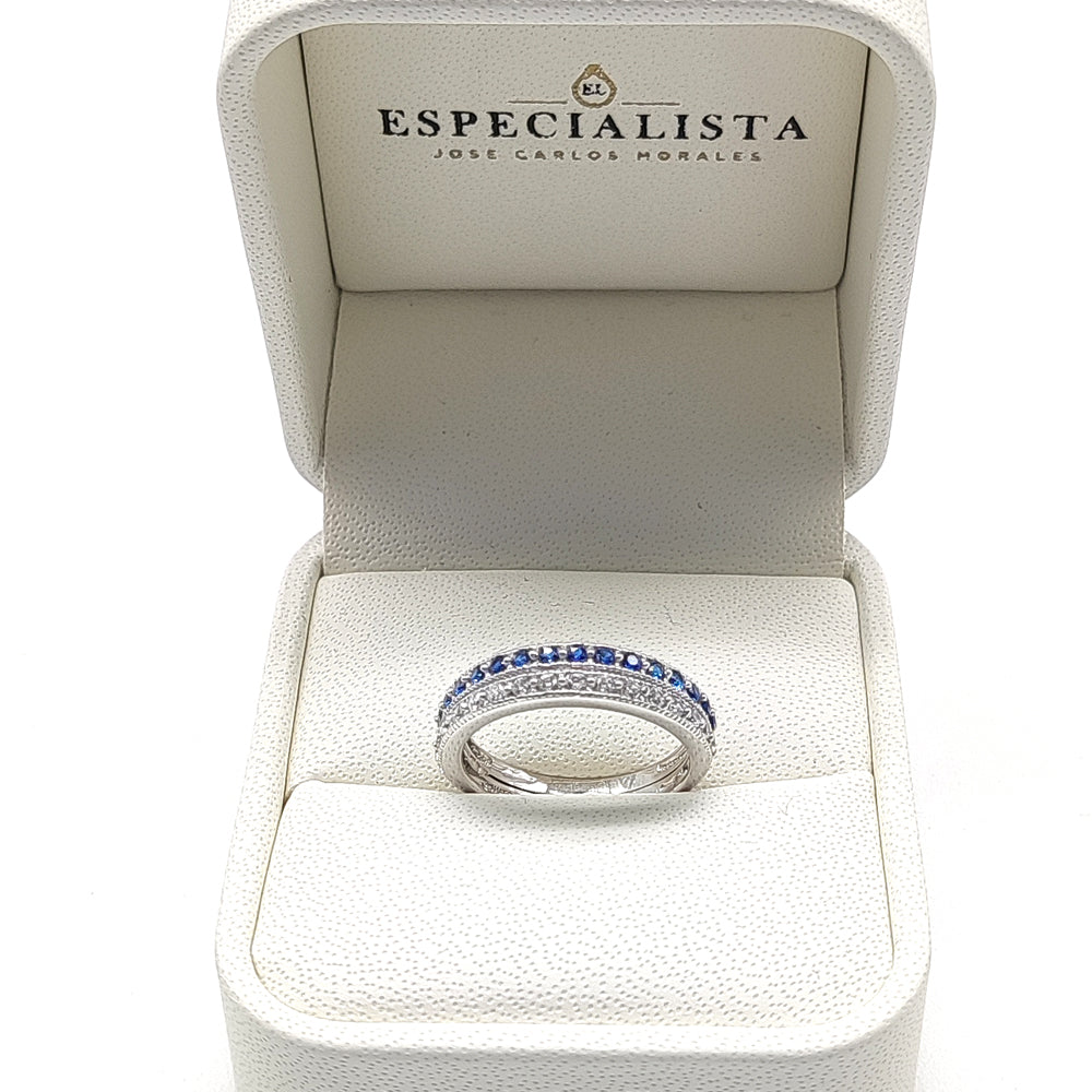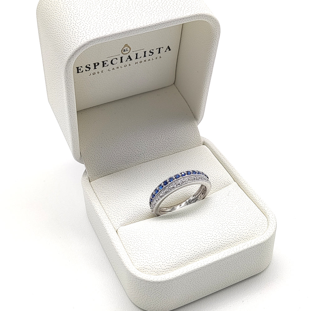 Churumbela en oro blanco con doble línea de circonias, azules y blancas importadas de alta calidad