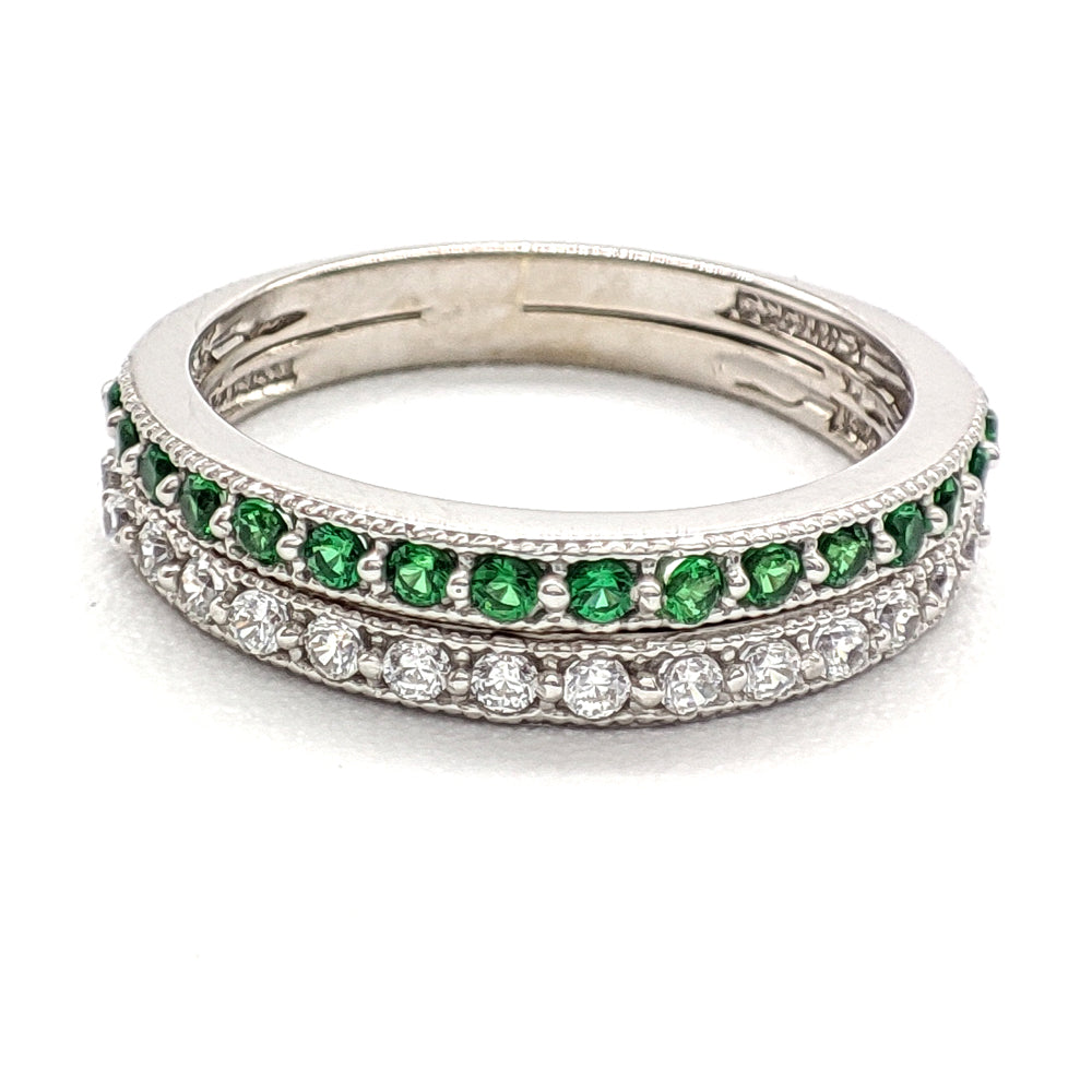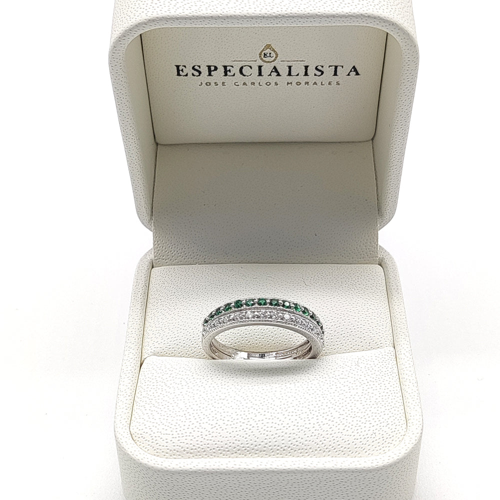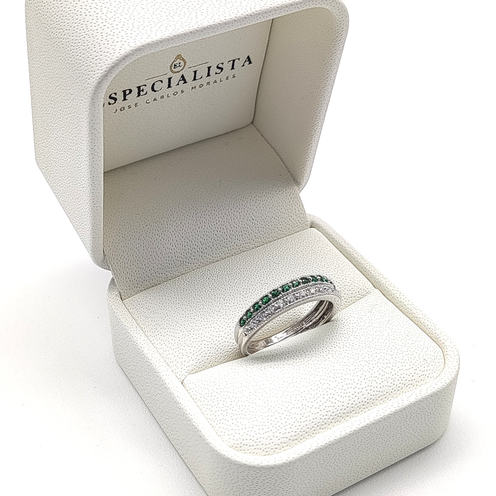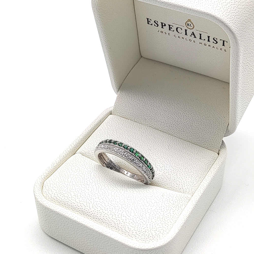 Churumbela en oro blanco con doble línea de circonias, verdes y blancas importadas de alta calidad