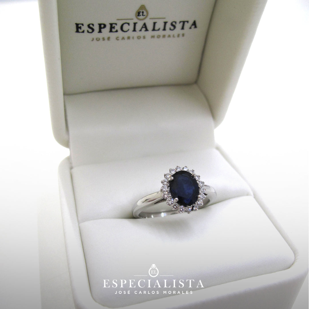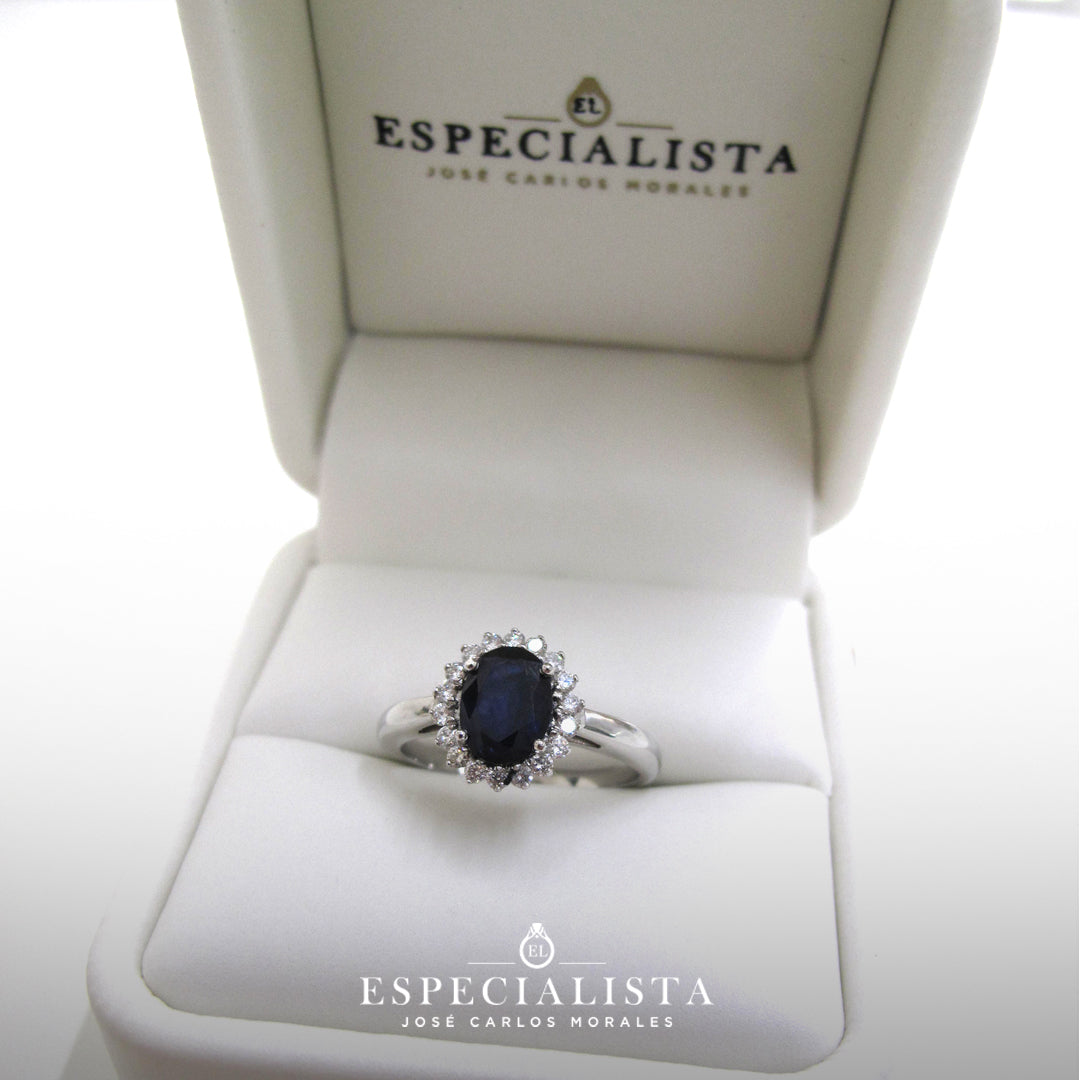 | Pedrería | 0.36 pts Diamante + 1/Zafiro 6x8mm/central |