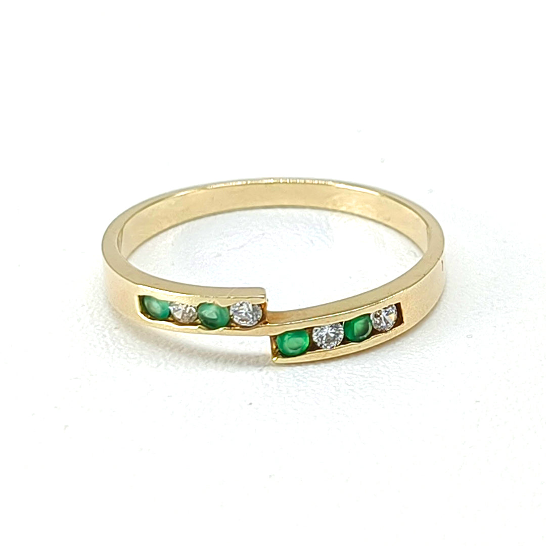 Churumbela en oro amarillo montado con circonias blancas y verdes